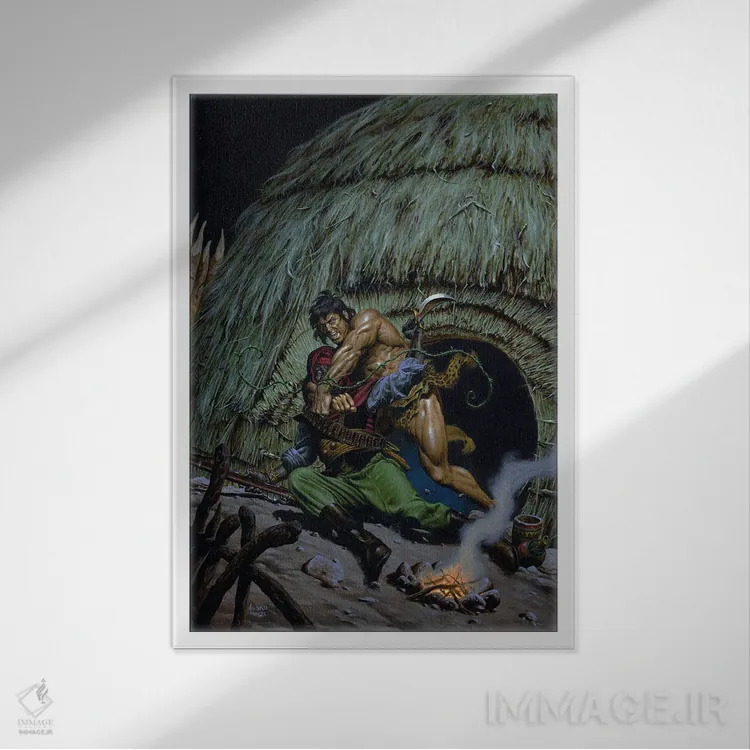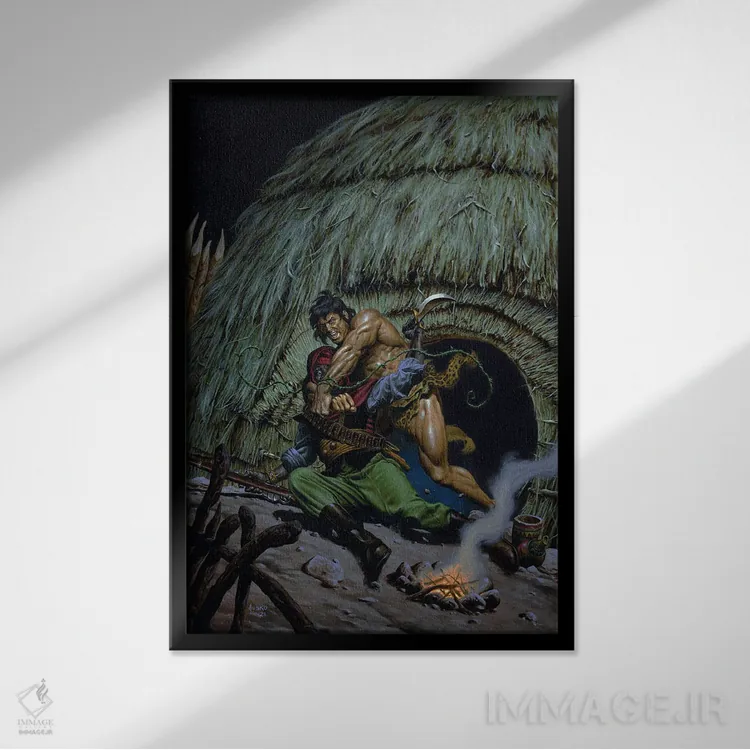 براساس پالت ترکیبی اثر، قاب تیک گرم (چوبی) پیشنهاد اول است و مشکی مات (فریم متوسط) مکمل.