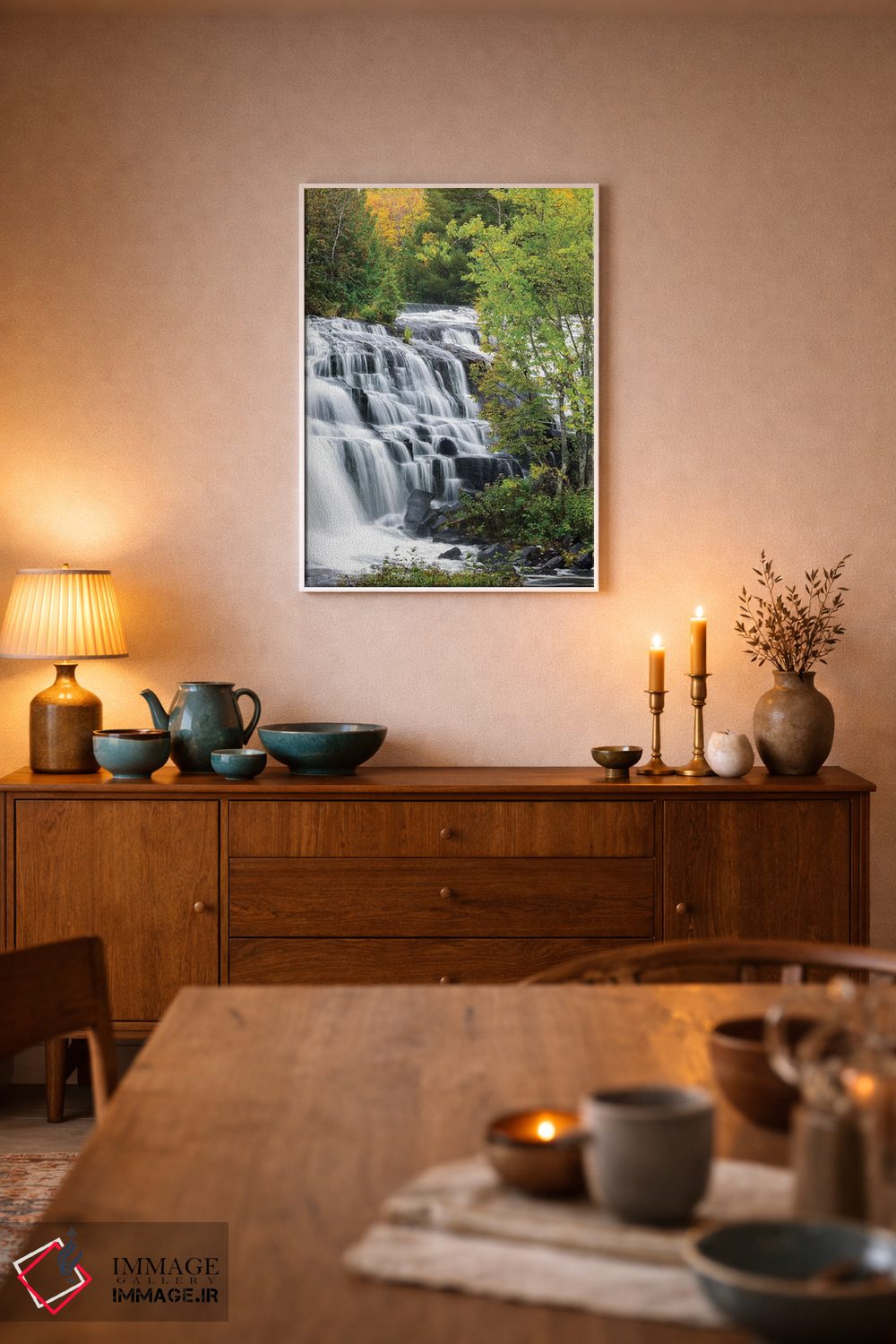 برای دیواری که میخواهید سلیقهتان را آرام و دقیق نشان بدهد، «Ontonagon County، Bond Falls I، میچیگان، شهرستان انتوناگون، آبشار باند ۱» اثرِ «جیمی و جودی وایلد (زوج عکاس/هنرمند)» حس گالریوار را بیسروصدا وارد خانه میکند؛ برای خانههایی که به هماهنگی رنگها اهمیت میدهند پیشنهاد میشود. در چیدمانهای مختلف، هماهنگپذیر و انعطافدار است.