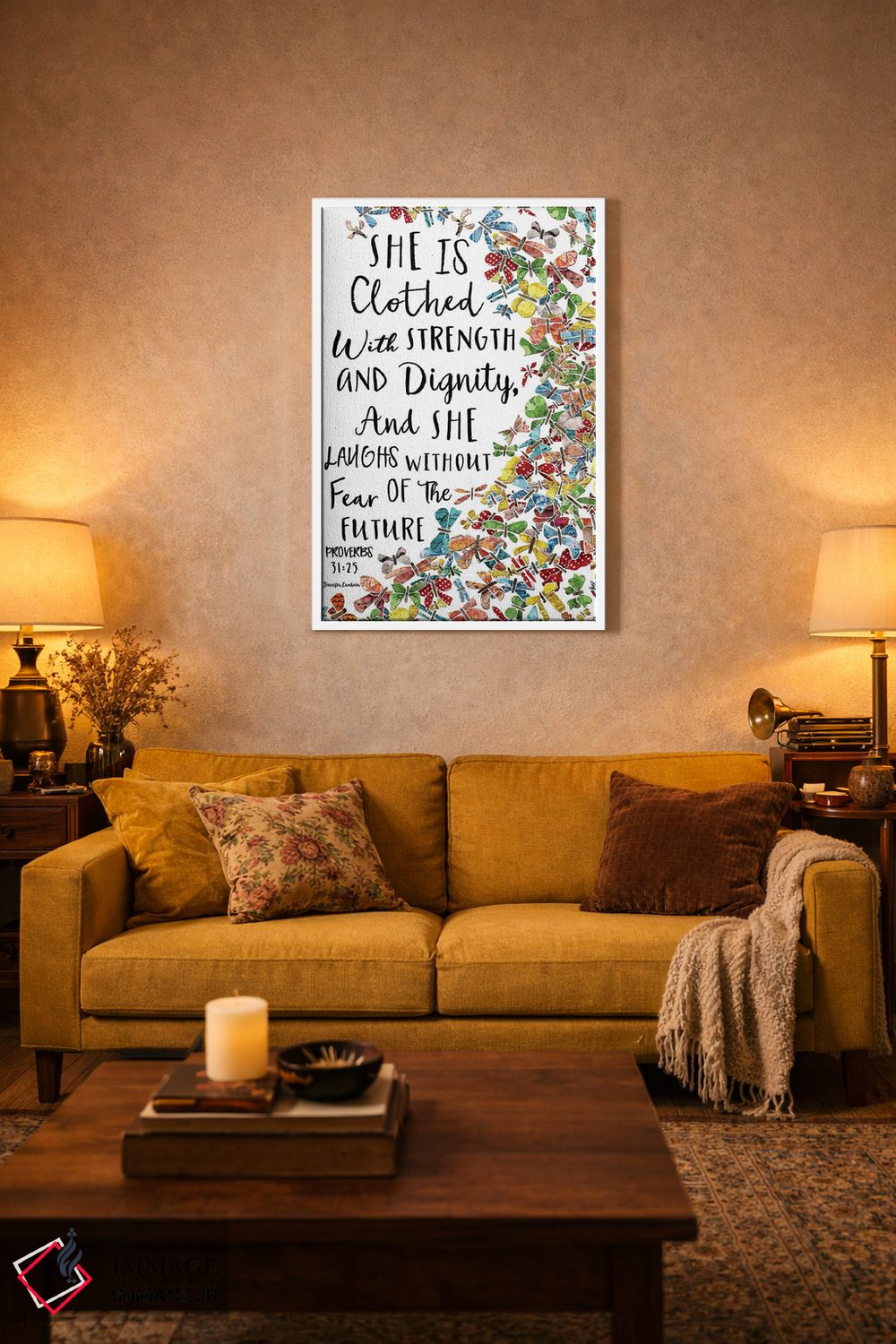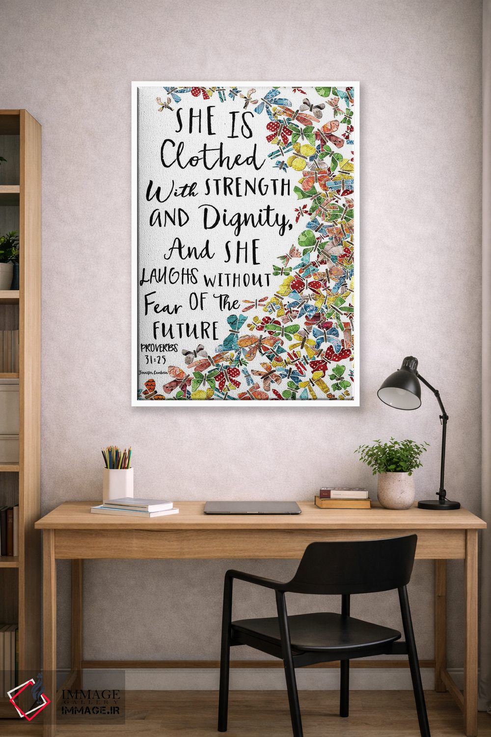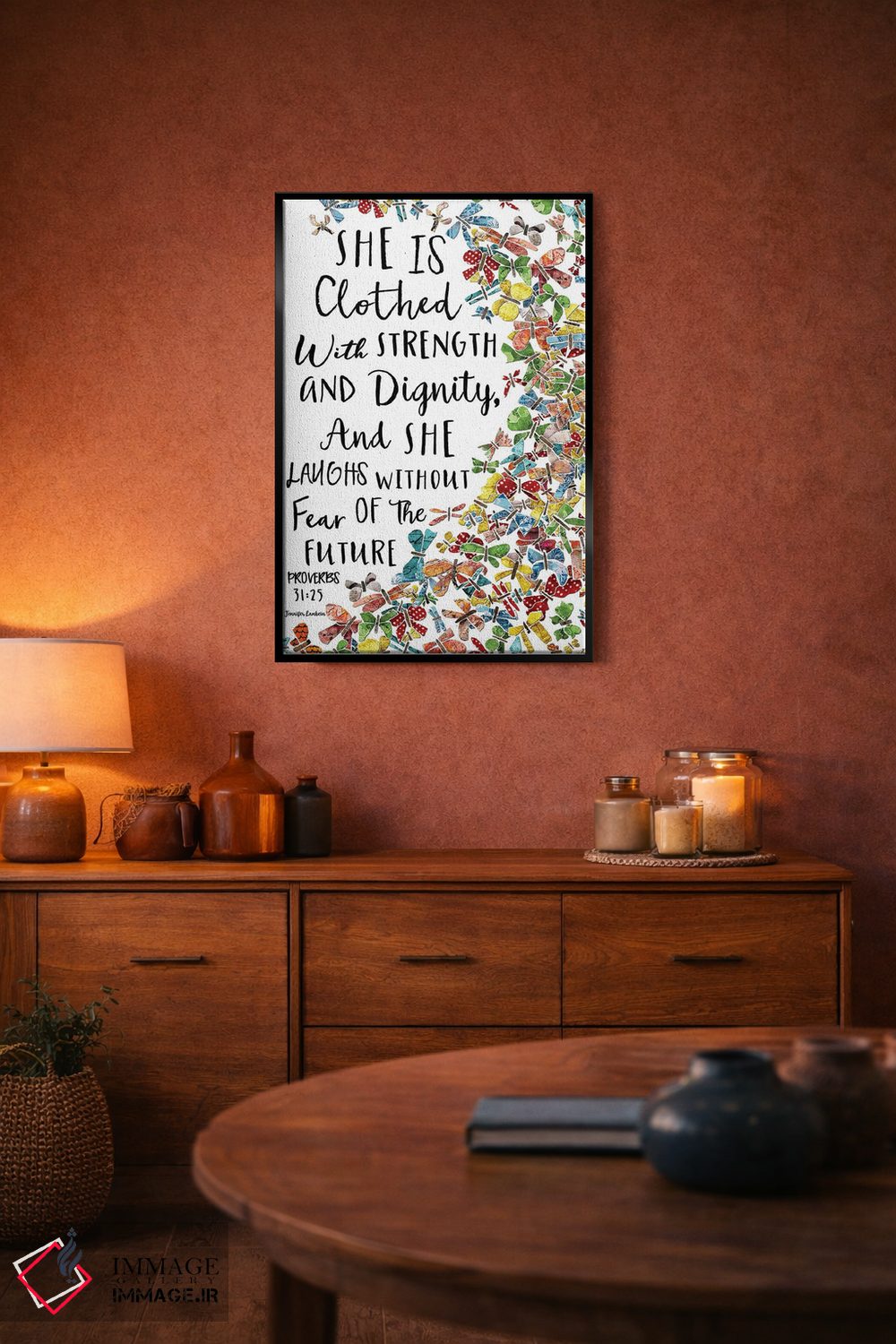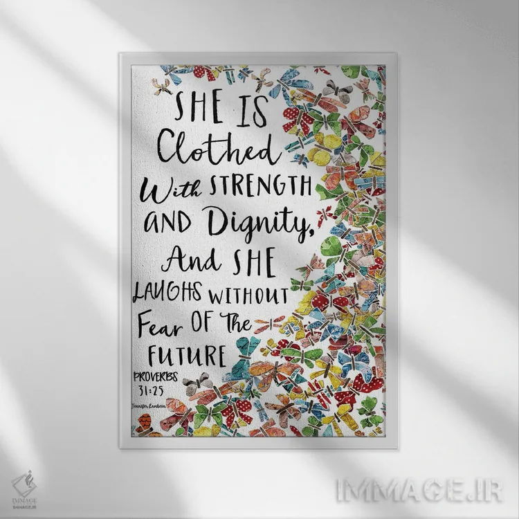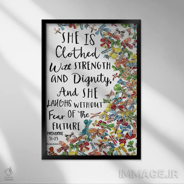 در این اثر، «او با پروانهها پوشانده شده است» اثرِ «جنیفر لمباین» یک حس «تمامشده و پرداختشده» ایجاد میکند؛ برای دیوار بالای کنسول یا شومینه پیشنهاد میشود. اگر میخواهید مهمانها مکث کنند، این اثر دلیل خوبیست.