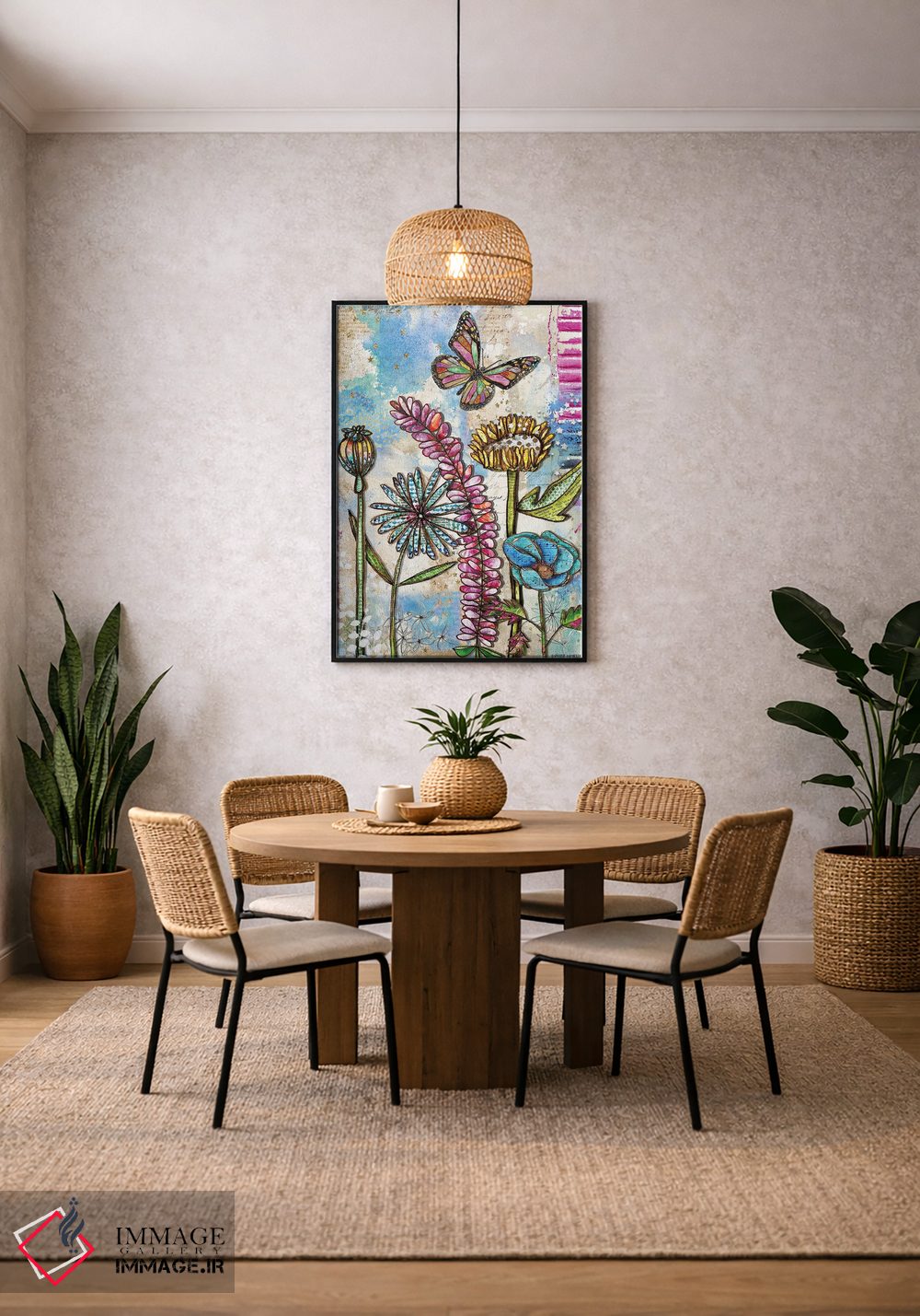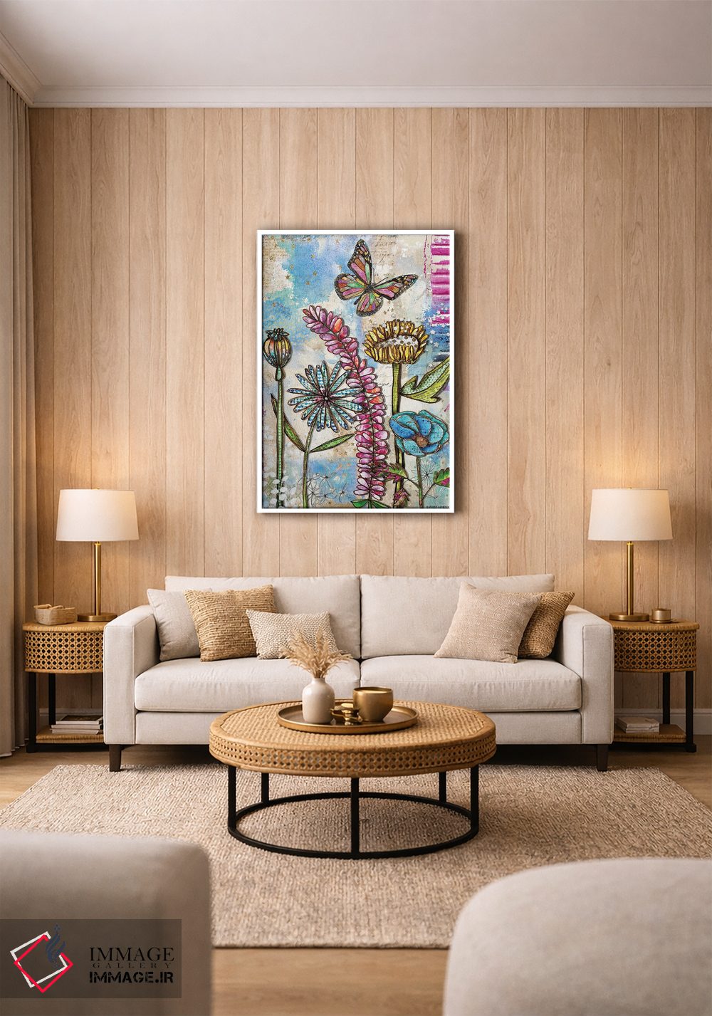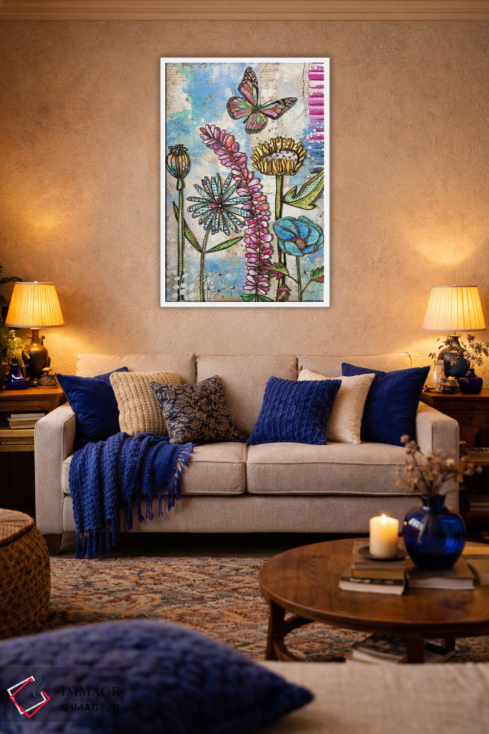براساس پالت ترکیبی اثر، قاب تیک گرم (چوبی) پیشنهاد اول است و مشکی مات (فریم متوسط) مکمل. برای سفارشهای پروژهای با ابعاد و قابهای اختصاصی با ایماژ در تماس باشید.