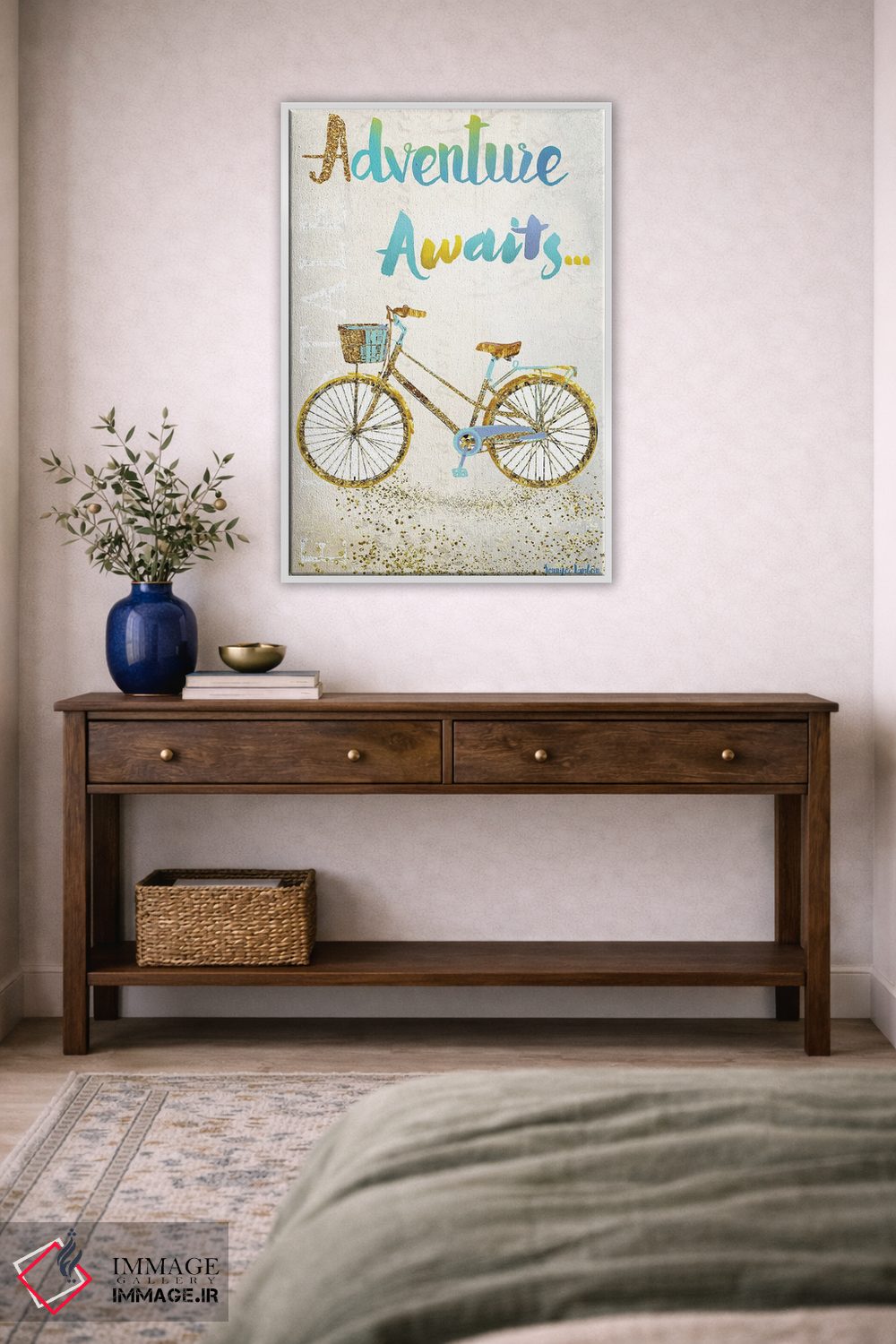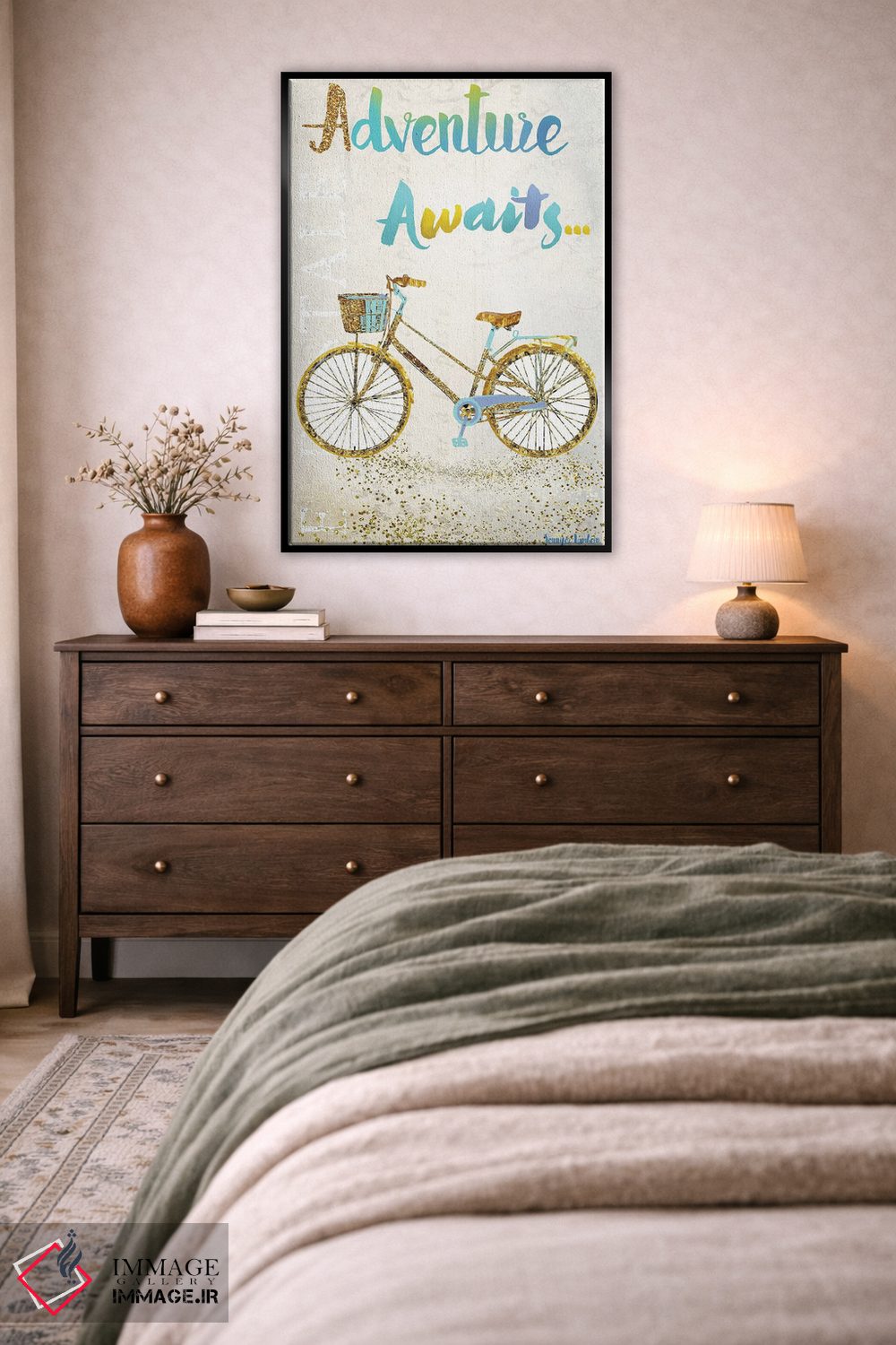 «ماجراجویی در انتظار است» اثرِ «جنیفر لمباین» با اجرای پرداختِ هنری، به دیوار شخصیت میدهد؛ مناسبِ فضای کار، اتاق نوجوان یا گوشهی مطالعه.