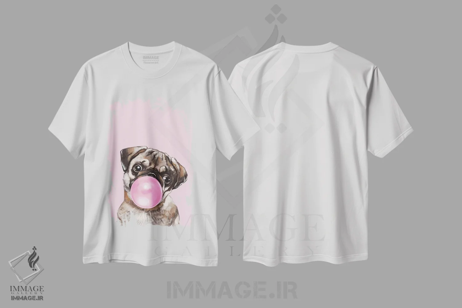 تی شرت فانتزی «پاگ و آدامس بادکنکی» با راهنمای ست رنگی