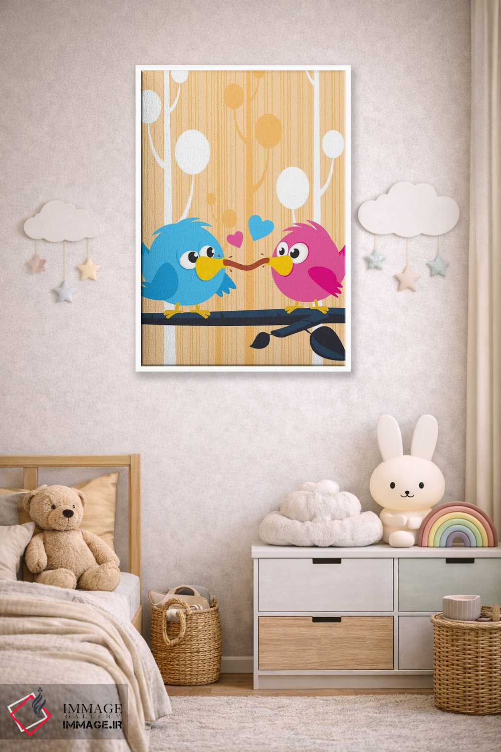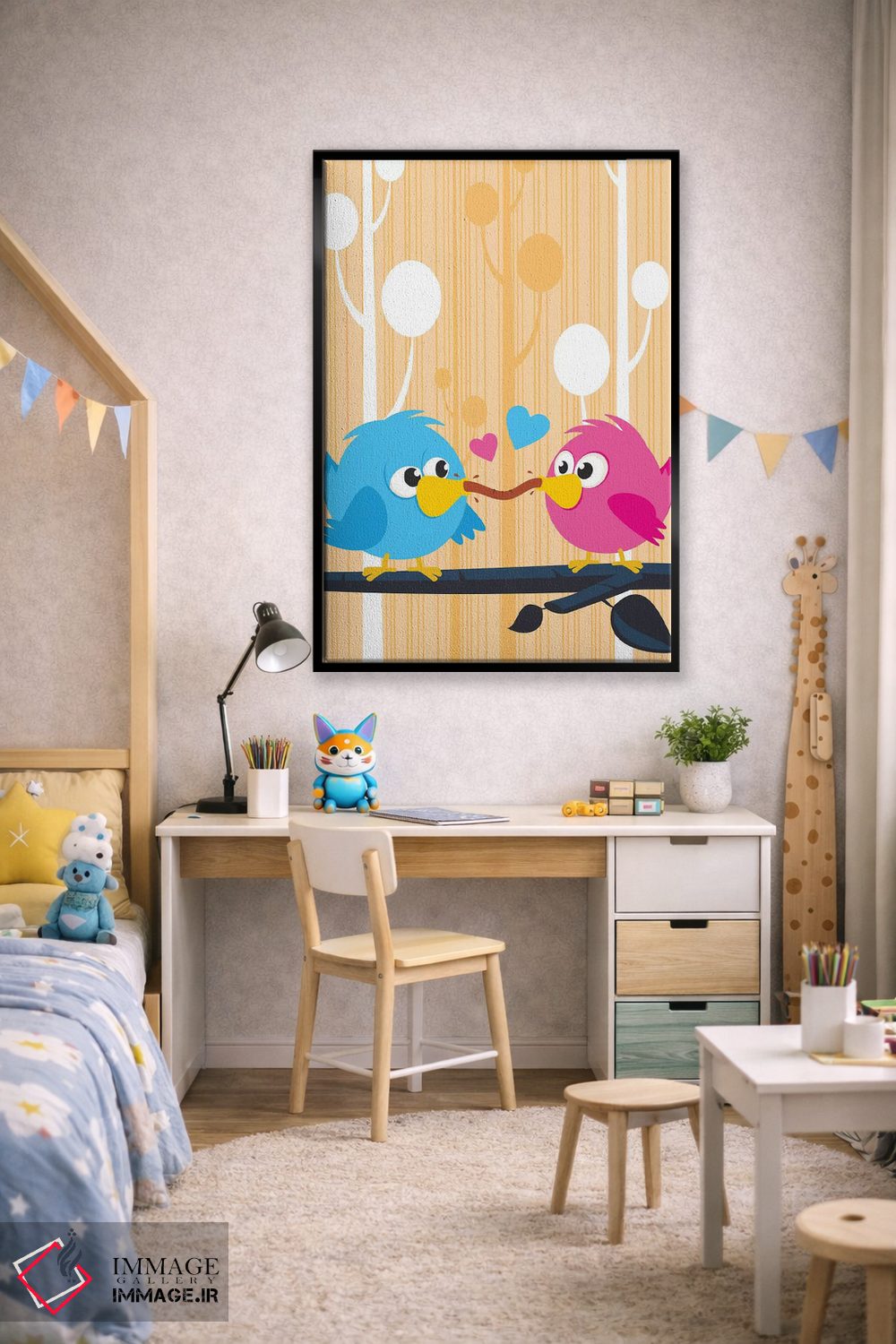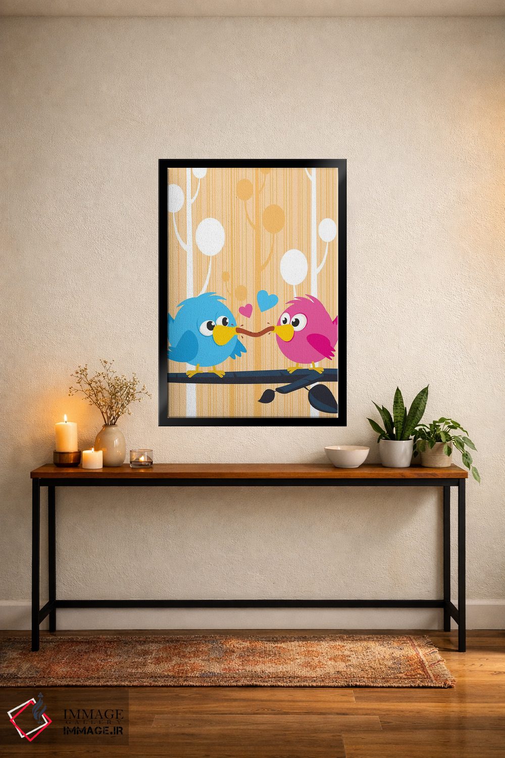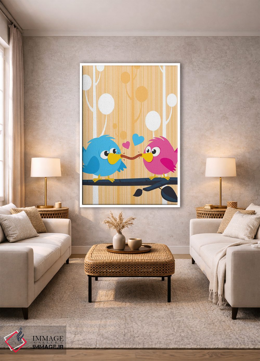 برای دیوارهای ساده، «مرغهای عشق» اثرِ «جیمز لی» بافت و جزئیات را طوری نشان میدهد که نگاه میماند؛ برای اتاق بازی یا گوشهٔ مطالعه انتخابی خوشسلیقه است. اگر دنبال اثر دوستداشتنیِ «بیغلو» هستید، این یکی دقیق مینشیند.