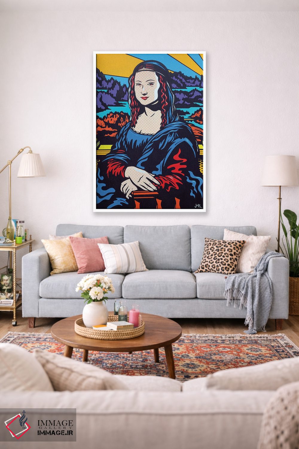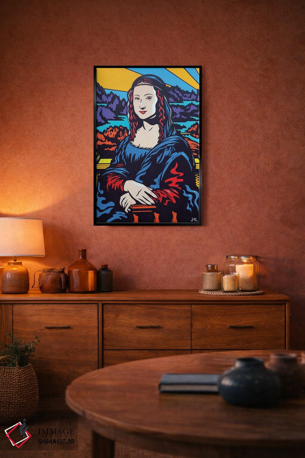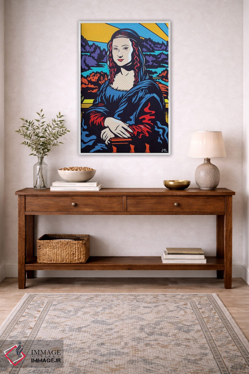 تابلو دکوراتیو مونالیزای پاپ اثر جیمز لی - نمای روبه‌رو روی دیوار