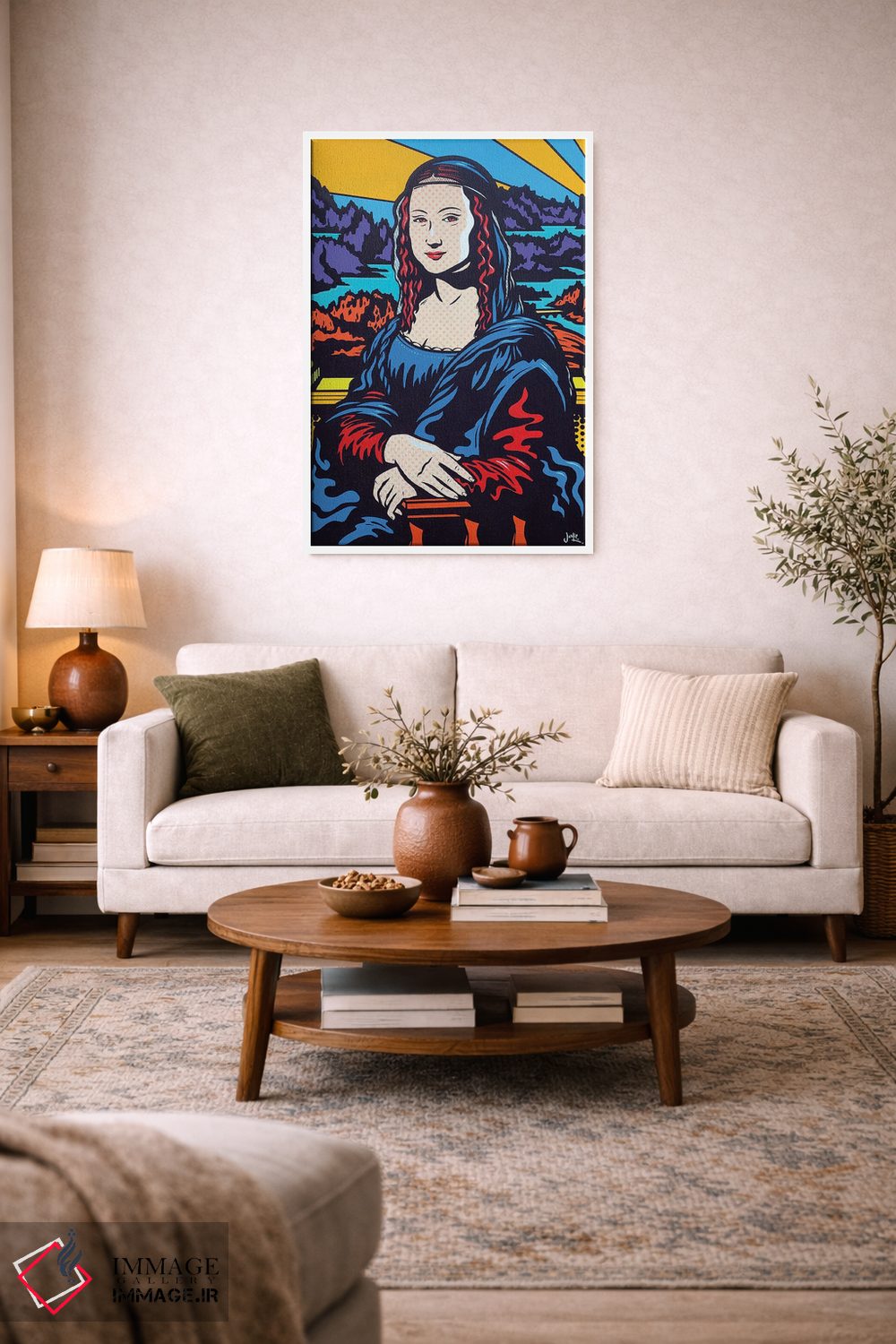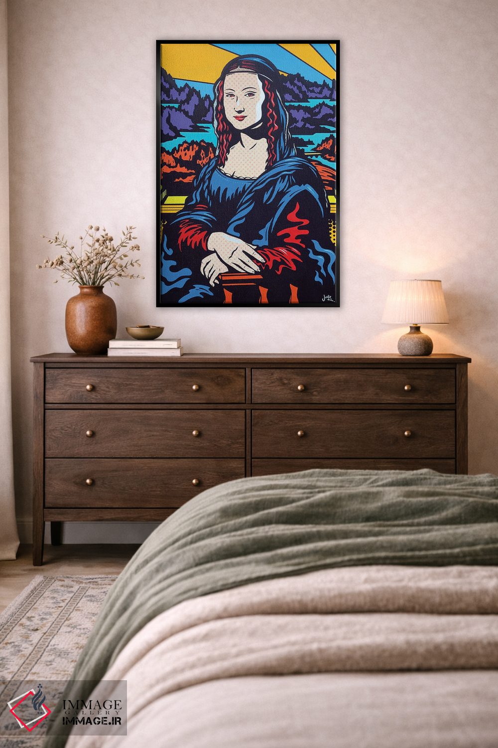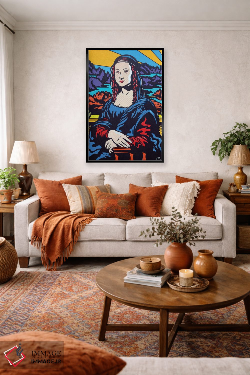 تابلو دکوراتیو مونالیزای پاپ اثر جیمز لی - نمای روبه‌رو روی دیوار