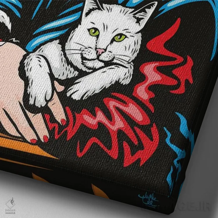 تابلو دکوراتیو مونالیزا با گربه ها اثر جیمز لی - نمای نزدیک بافت بوم