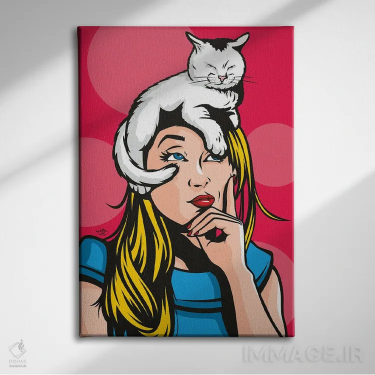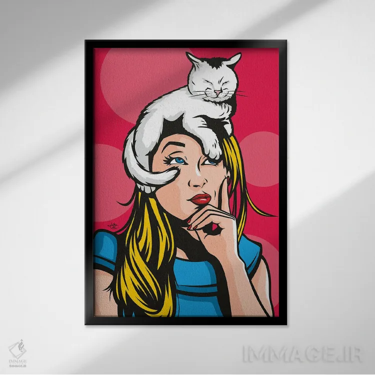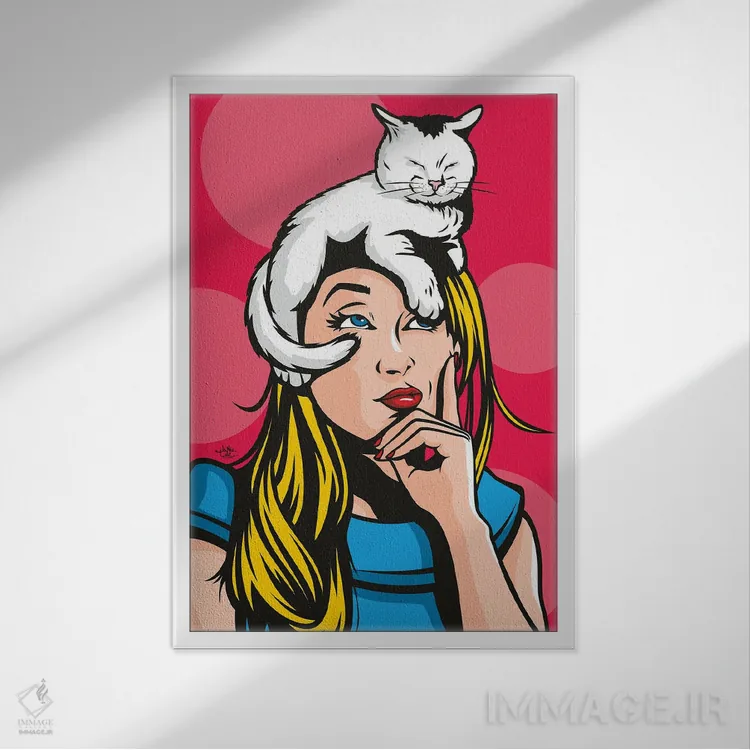 تابلو دکوراتیو گربه بر روی زن بلوند داغ اثر جیمز لی