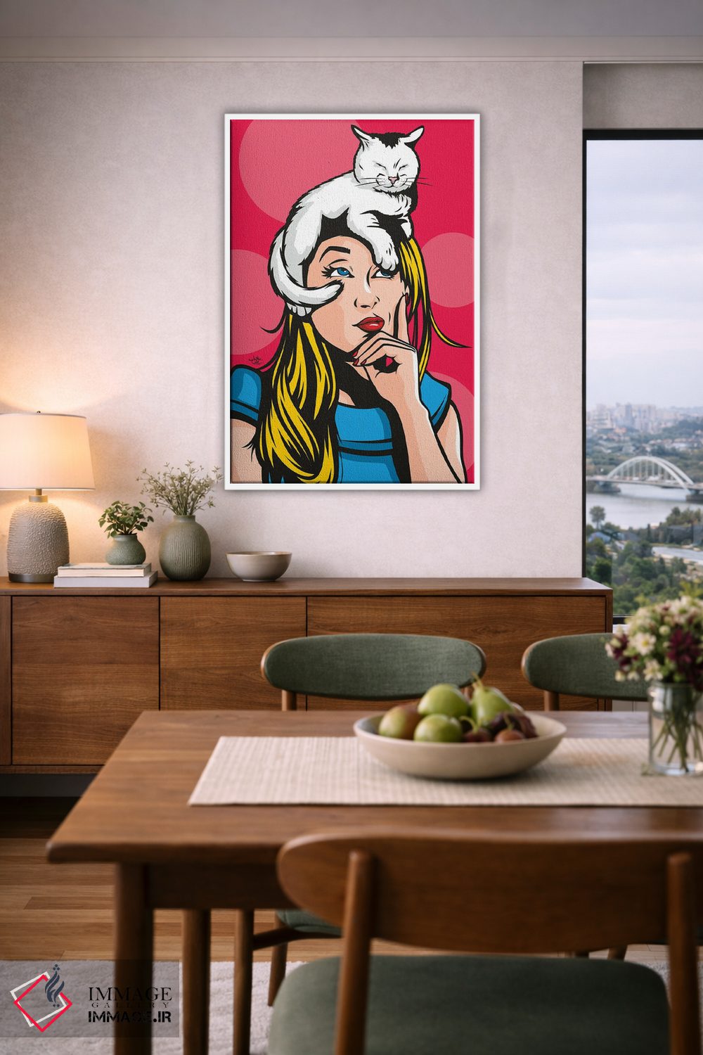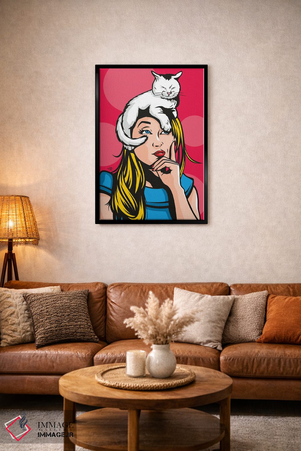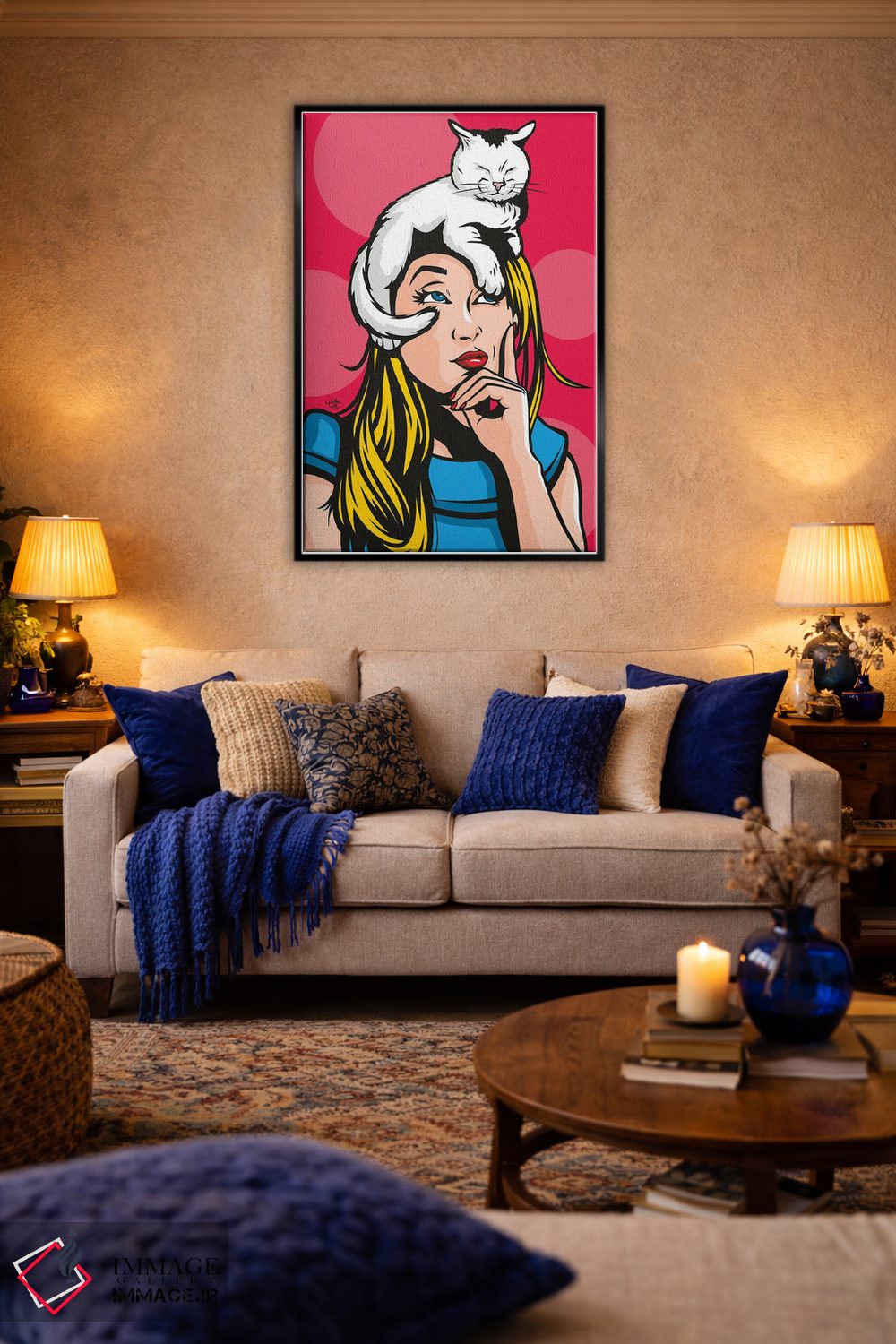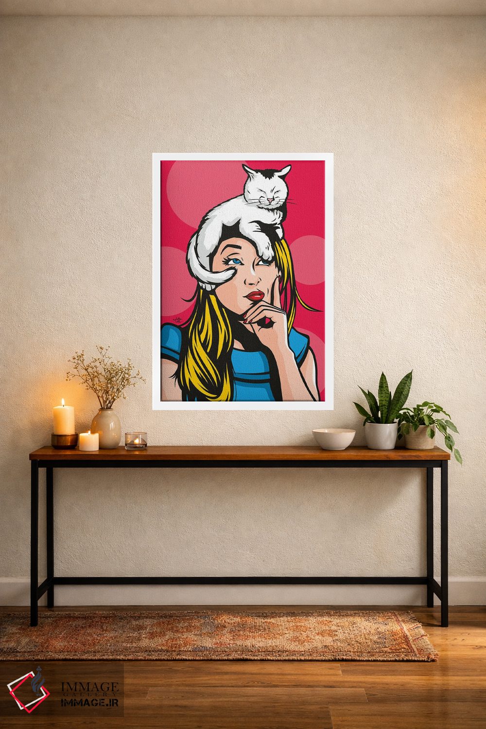 این اثر با عنوان «گربه بر روی زن بلوند داغ» اثرِ «جیمز لی» برای دکورهای مینیمال، یک نقطهٔ توجه میسازد؛ برای اتاق کودک (بدون لحن کودکانه) انتخابی خوشسلیقه است. حسش صمیمی است، اما کیفیتش جدی و خوشپرداخت.
