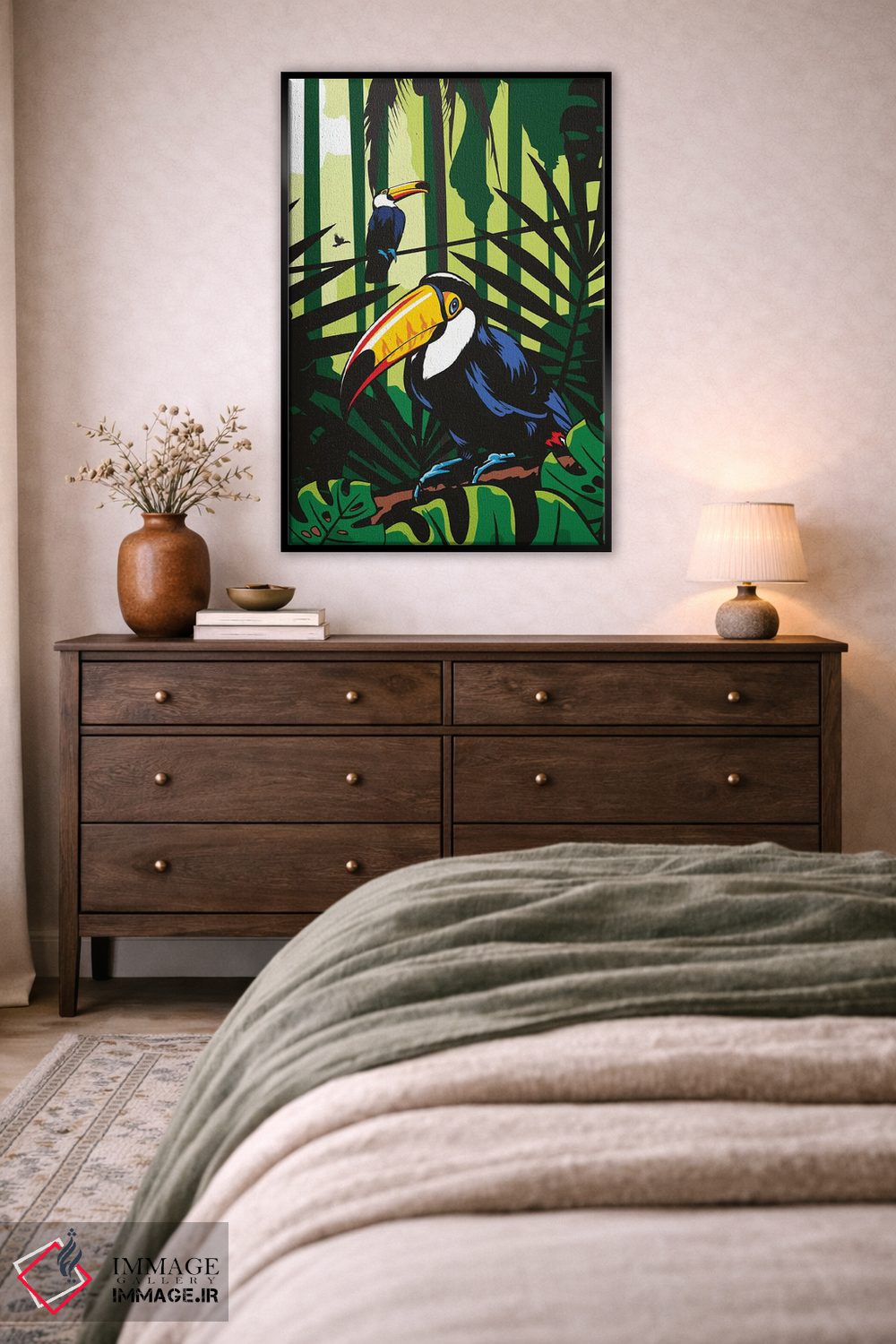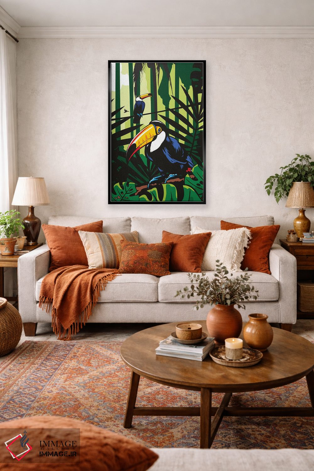 برای دکورهای صمیمی، «توکانها (نوعی پرنده)» اثرِ «جیمز لی» برای دکورهای مینیمال، یک نقطهٔ توجه میسازد؛ برای نشیمنهای خانوادگی انتخابی خوشسلیقه است. هر بار نگاهش میکنید، یک جزئیات تازه به چشم میآید.