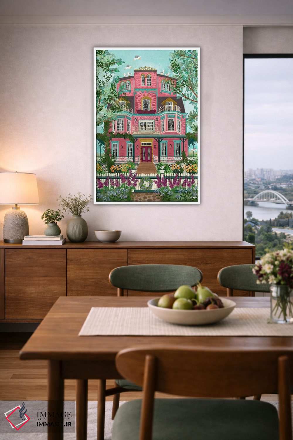 بوم گالری ایماژ نسخهی چیدماناتیوِ سطحبالا از یک اثر هنری است. روی کنواس سفیدِ یکدست و بدون اسید با اجرای چاپ هنری جیکلی (Giclée) برای آرتپرینتهای جدی با جوهرهای آرشیویِ حرفهای برای لایههای رنگی خواناتر؛ حس نهایی نزدیکتر به ارائهی گالریوار است؛ نه صرفاً یک تصویر. تابلو پس از آمادهسازی روی کلاف کشیده میشود و نصب آن ساده و بیدردسر است.