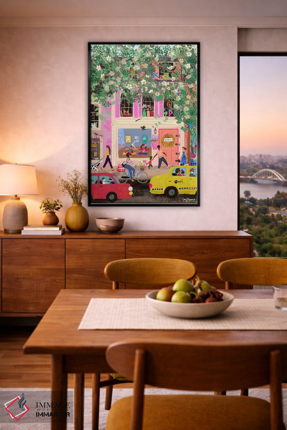 «رویای صورتی خیابان بهار» اثرِ «جوی لافرم» یک قاب دکوراتیوِ گرم و دلنشین است؛ این اثر در اجرای پرداختِ هنری، فضا را نرمتر و صمیمیتر نشان میدهد.