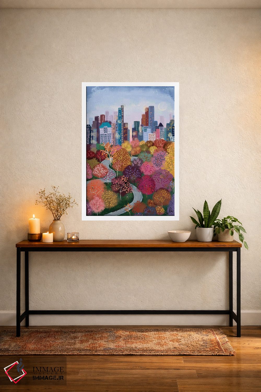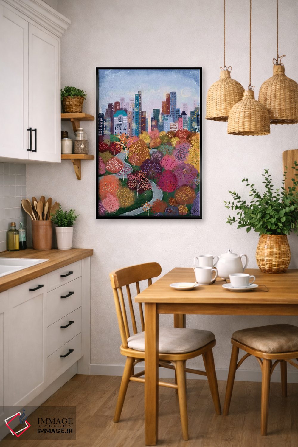 اگر دکور شما ترکیبی و پر از بافت است، «پاییز در پارک» اثرِ «جوی لافرم» با موضوعِ این اثر در حس بوهمی انتخابی هماهنگ است.