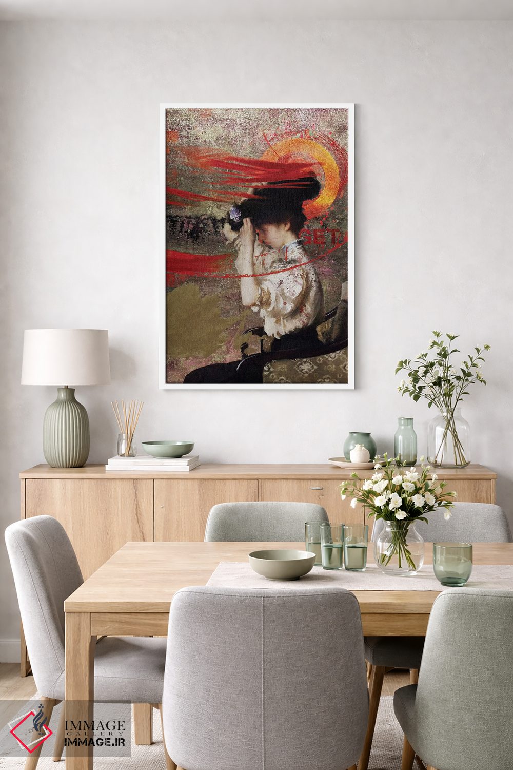 طراحی بوم گالری ایماژ بهگونهای است که اثر روی دیوار «پرداختشده» و حرفهای دیده شود—نه پرزرقوبرقِ بیپایه؛ بلکه دقیق و خوشپرداخت. با بافت ظریف کنواس، حس اثر هنری را در نگاه نزدیک نگه میدارد بدون اغراق؛ فقط دقیقتر. قابپذیری باعث میشود قاب مناسب مرز بصری تمیزتری به اثر میدهد. حاصل کار، یک تابلو خوشنشین است که هم از دور اثرگذار است و هم از نزدیک خوشخوان؛ برای هدیهی هنری هم انتخاب محترمانهای است.