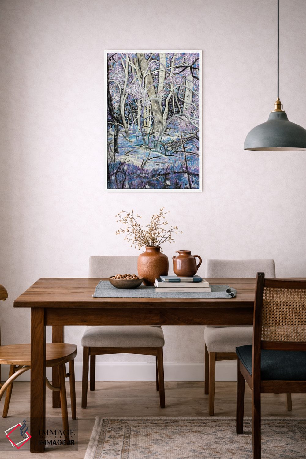 این تابلو با این اثر و حس پرداختِ هنری، در دکورهای مدرن هم خوب مینشیند؛ چون روایتش ظریف است و فضا را ریتم فضا را منظم نگه میدارد.