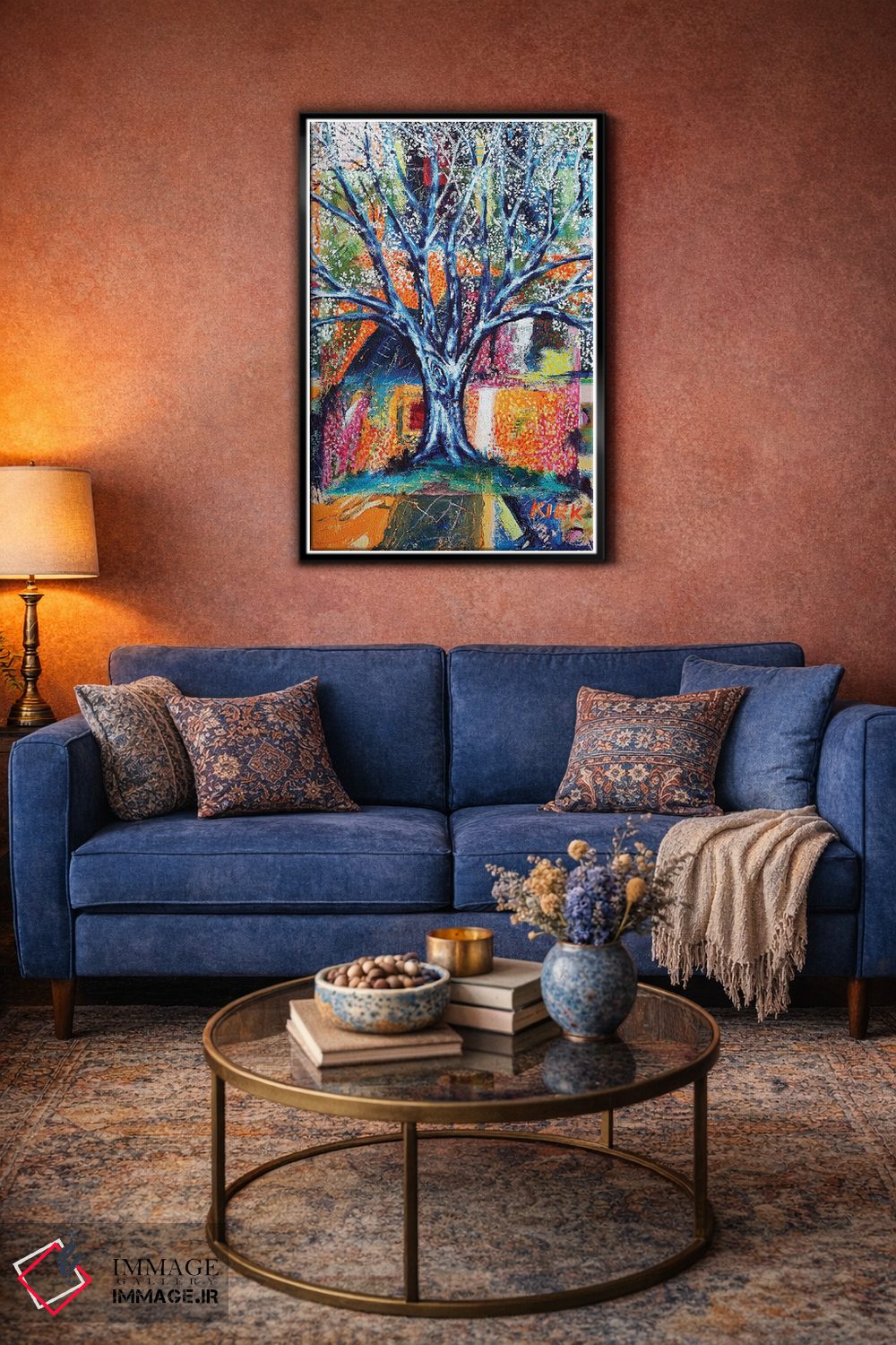 براساس پالت ترکیبی اثر، قاب تیک گرم (چوبی) پیشنهاد اول است و مشکی مات (فریم متوسط) مکمل. برای سفارشهای پروژهای با ابعاد و قابهای اختصاصی با ایماژ در تماس باشید.