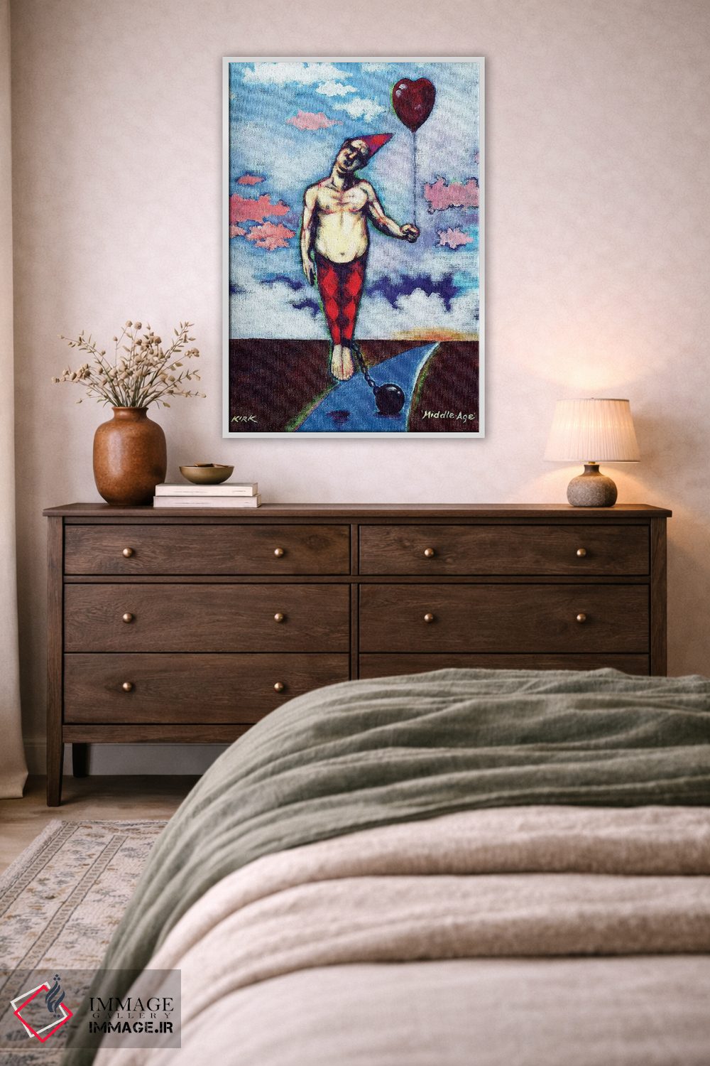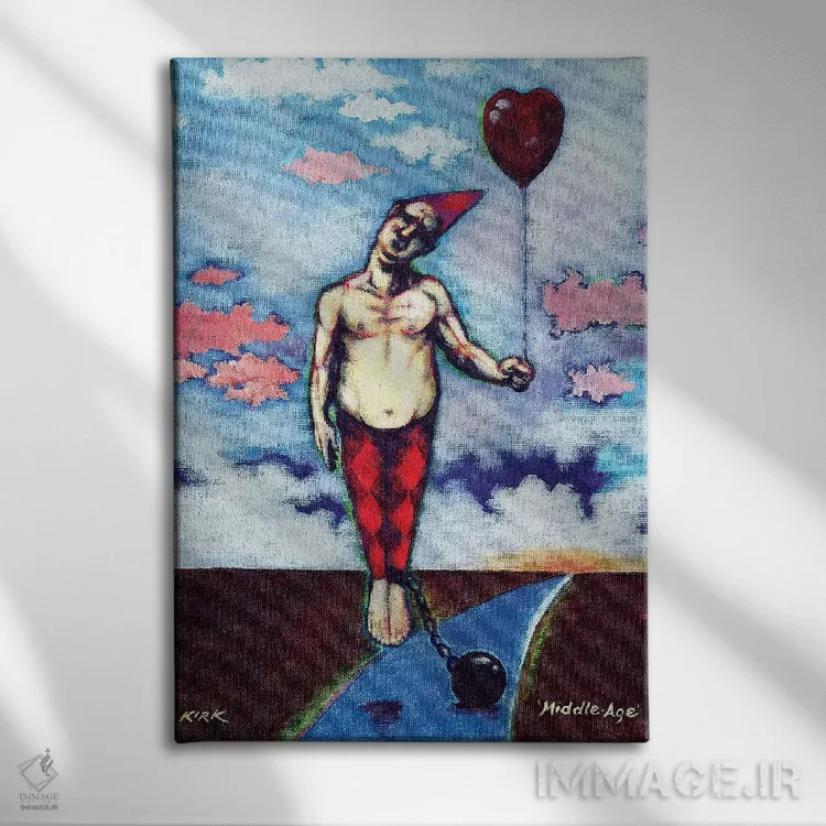 «میانسالی» اثرِ «جری لی کرک» با رویکرد هنری و موضوعِ این اثر، حسِ گالریوار و مرتب به فضا میدهد؛ مناسبِ پذیراییهای کلاسیک و معاصر.