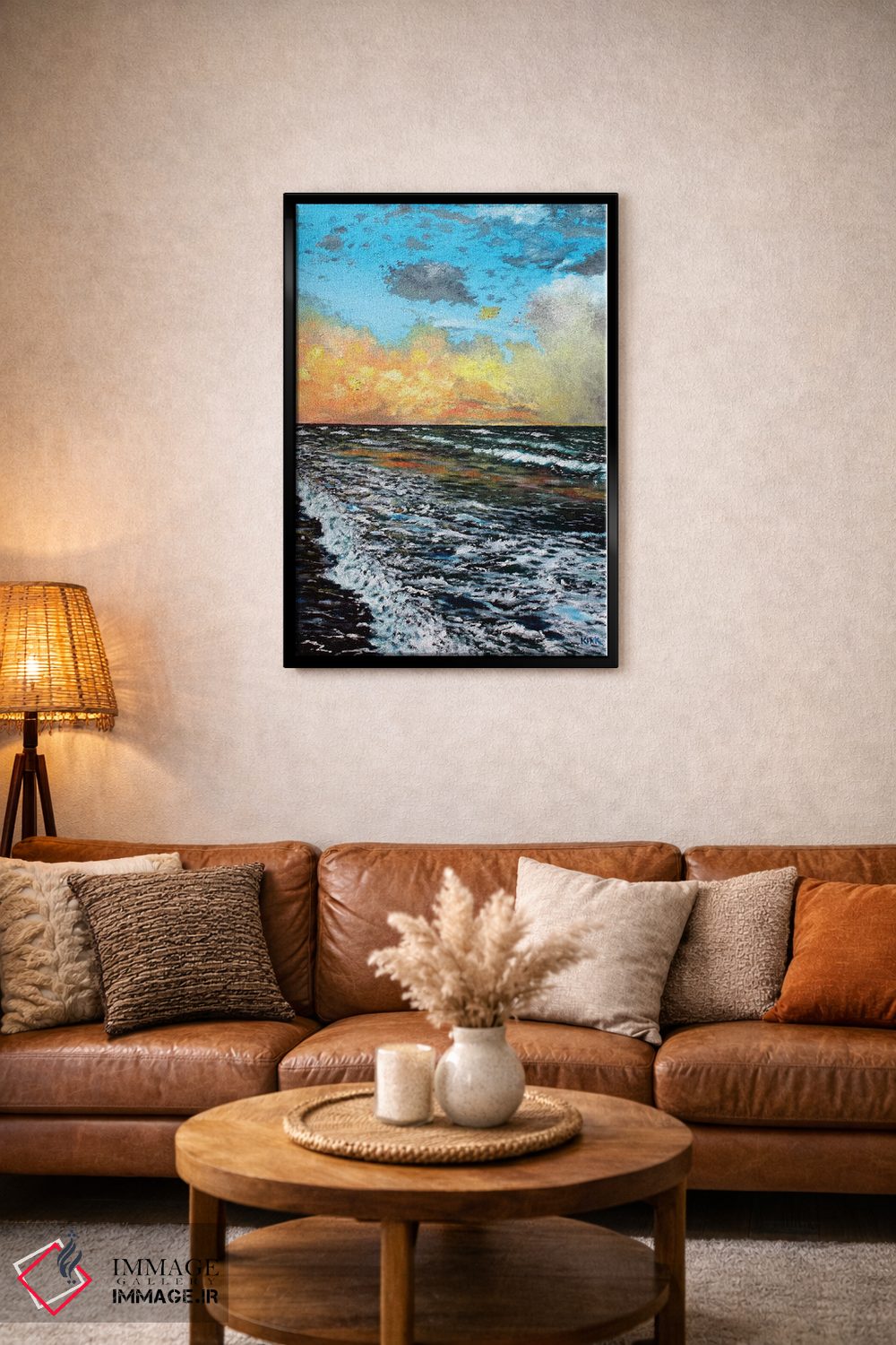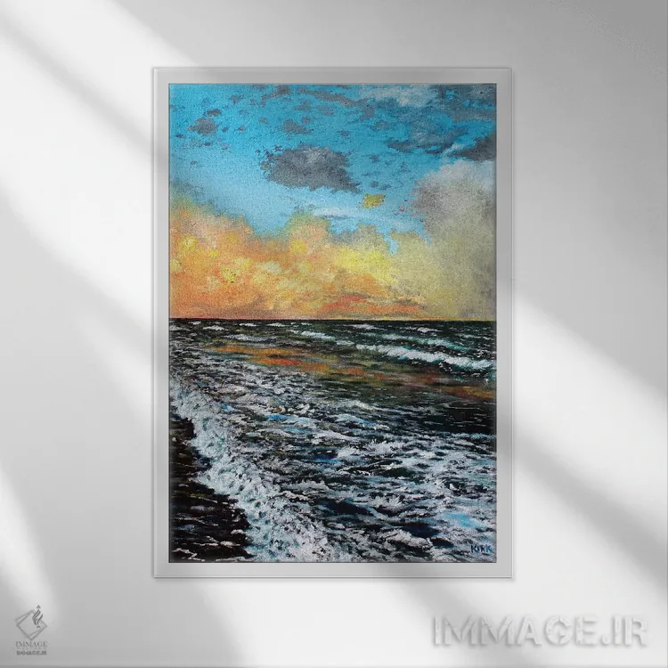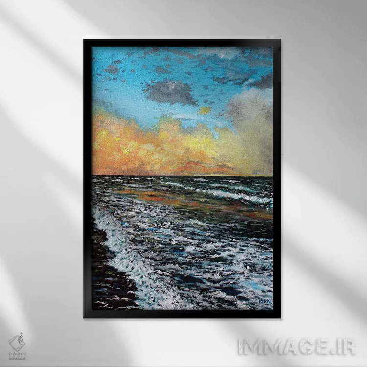 براساس پالت ترکیبی اثر، قاب تیک گرم (چوبی) پیشنهاد اول است و مشکی مات (فریم متوسط) مکمل. برای سفارشهای پروژهای با ابعاد و قابهای اختصاصی با ایماژ در تماس باشید.
