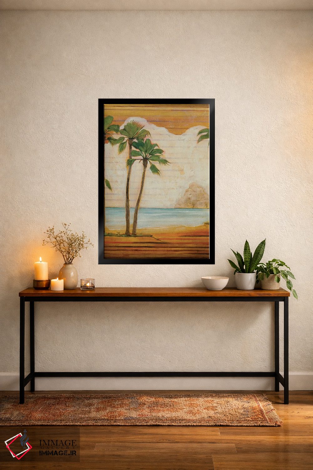 ساختار بوم گالری ایماژ طوری است که اثر روی دیوار «پرداختشده» و حرفهای دیده شود—نه پرزرقوبرقِ بیپایه؛ بلکه دقیق و خوشپرداخت. بافت ظریف کنواس باعث میشود حس اثر هنری را در نگاه نزدیک نگه میدارد و برای محیطهای رسمیتر هم انتخاب مطمئنی است. بافت ظریف کنواس کمک میکند باعث میشود سطح کار زندهتر دیده شود و نتیجه را یکدستتر میکند. حاصل کار، یک تابلو خوشنشین است که هم از دور اثرگذار است و هم از نزدیک خوشخوان؛ در کنار نورپردازی درست، جلوهی گالریوار بیشتری حس میشود.