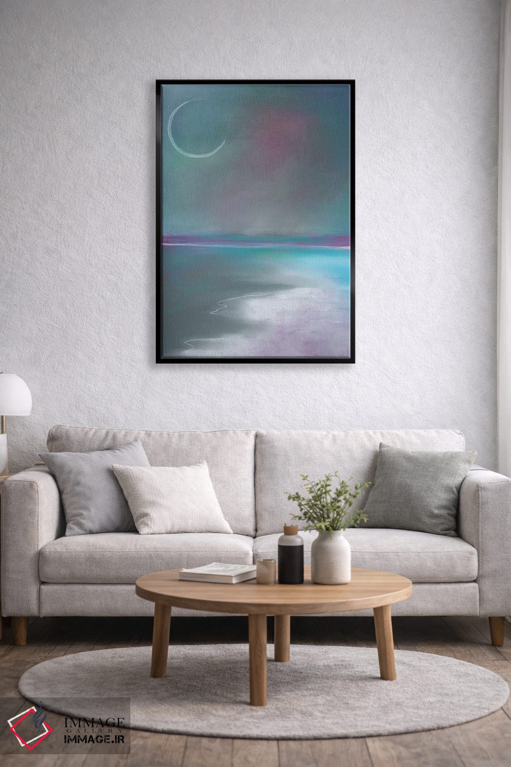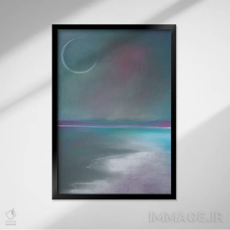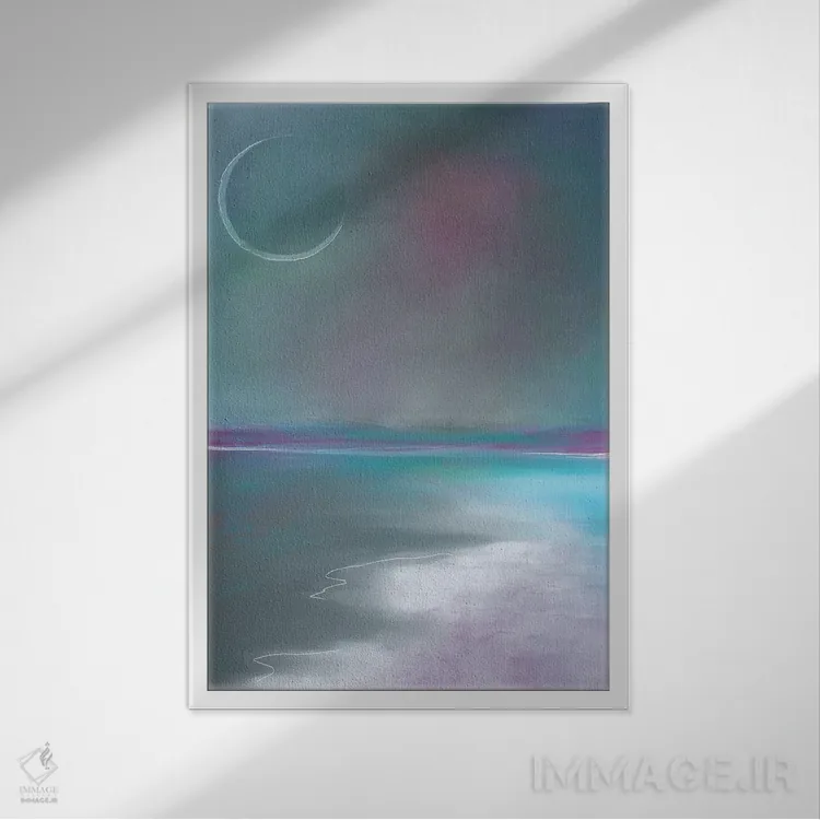 براساس پالت سرد اثر، قاب سفید مات (فریم باریک) پیشنهاد اول است و نقرهای برسخورده (متالیک) مکمل. برای سفارشهای پروژهای با ابعاد و قابهای اختصاصی با ایماژ در تماس باشید.