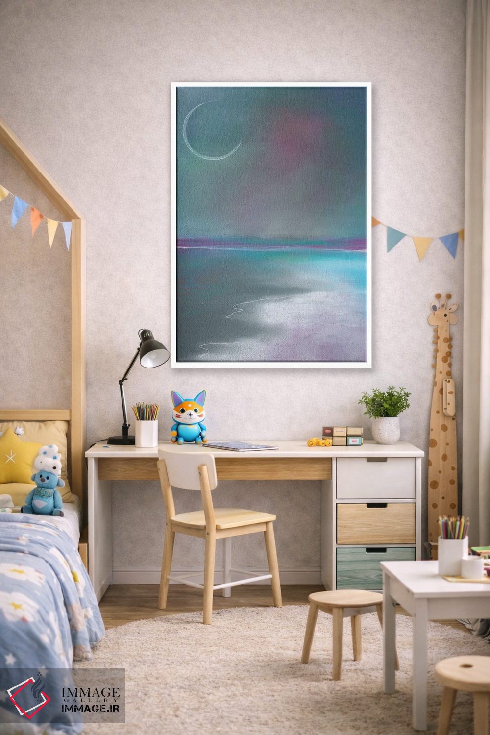 بوم گالری ایماژ طوری طراحی شده که اثر روی دیوار «پرداختشده» و حرفهای دیده شود—نه پرزرقوبرقِ بیپایه؛ بلکه دقیق و خوشپرداخت. بافت ظریف کنواس کمک میکند حس اثر هنری را در نگاه نزدیک نگه میدارد. با کنترل تونها، تعادل بهتری بین نور و رنگ ایجاد میکند و نتیجه را یکدستتر میکند. حاصل کار، یک تابلو خوشنشین است که هم از دور اثرگذار است و هم از نزدیک خوشخوان؛ در محیطهای کاری، این نظم بصری خیلی به چشم میآید.