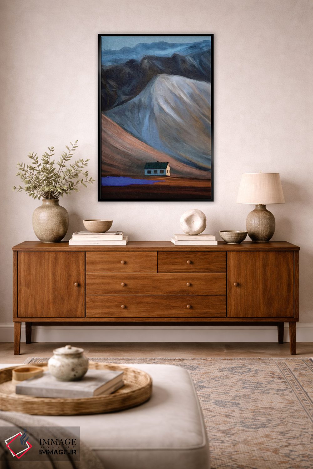 براساس پالت ترکیبی اثر، قاب تیک گرم (چوبی) پیشنهاد اول است و مشکی مات (فریم متوسط) مکمل. برای سفارشهای پروژهای با ابعاد و قابهای اختصاصی با ایماژ در تماس باشید.