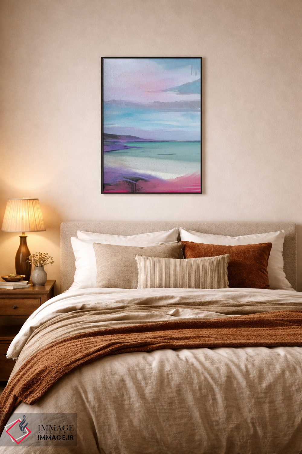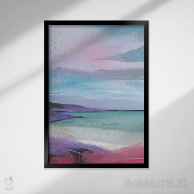 براساس پالت ترکیبی اثر، قاب تیک گرم (چوبی) پیشنهاد اول است و مشکی مات (فریم متوسط) مکمل. برای سفارشهای پروژهای با ابعاد و قابهای اختصاصی با ایماژ در تماس باشید.
