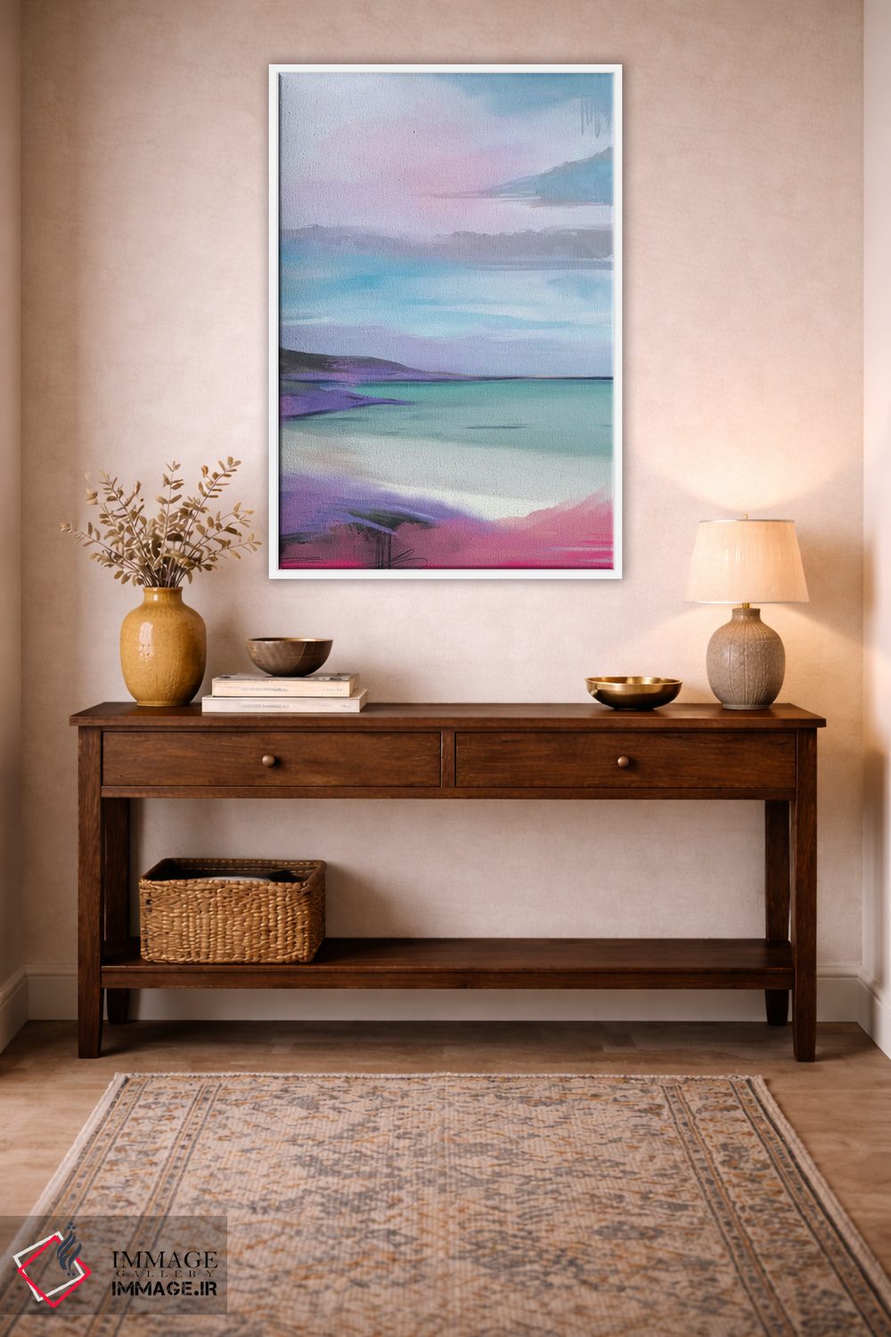 «ساحل جزیرهٔ غان صورتی» اثرِ «جولیانا لوومر» با لحن هنری، نقطهٔ کانونی میسازد بدون اینکه فضا را شلوغ کند.