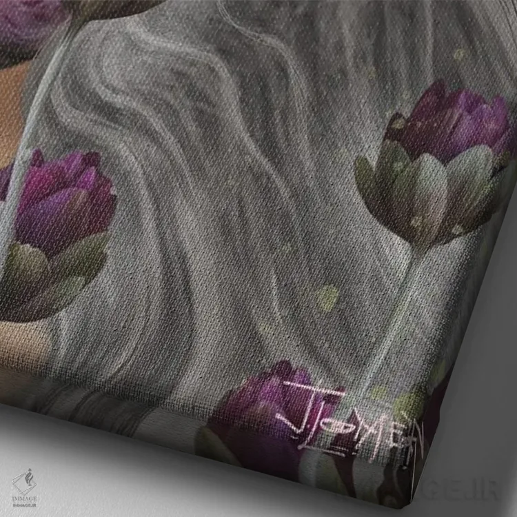 تابلو دکوراتیو خورشید نقره ای اثر جولیانا لوومر - نمای نزدیک بافت بوم