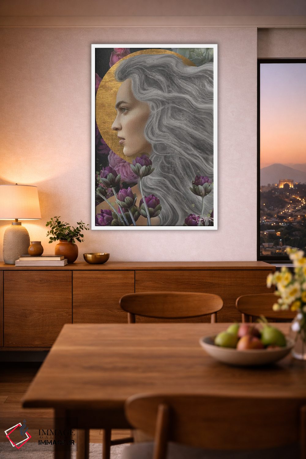 تابلو دکوراتیو خورشید نقره ای اثر جولیانا لوومر - نمای پرسپکتیو محصول