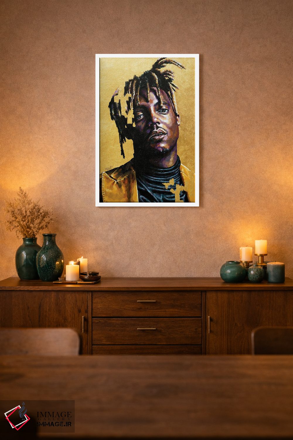 براساس پالت گرم اثر، قاب تیک گرم (چوبی) پیشنهاد اول است و مشکی مات (فریم متوسط) مکمل. برای سفارشهای پروژهای با ابعاد و قابهای اختصاصی با ایماژ در تماس باشید.