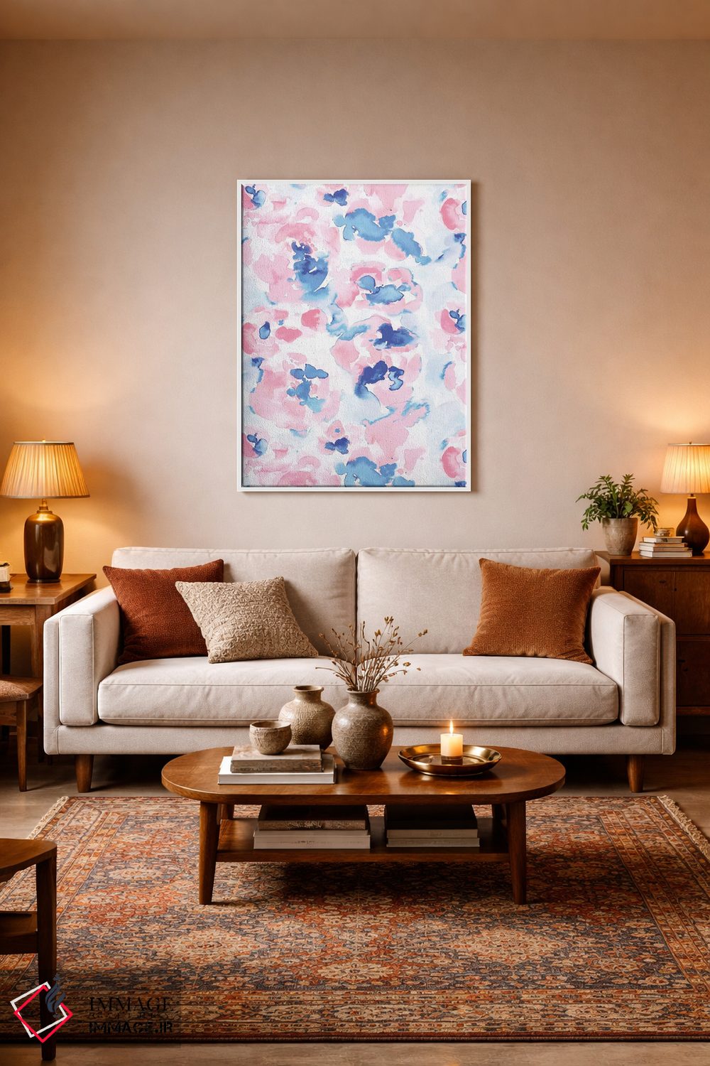 ساختار بوم گالری ایماژ طوری است که اثر روی دیوار «پرداختشده» و حرفهای دیده شود—نه پرزرقوبرقِ بیپایه؛ بلکه دقیق و خوشپرداخت. با بافت ظریف کنواس، حس اثر هنری را در نگاه نزدیک نگه میدارد و همین «پرداخت» تفاوت را میسازد. در چاپ جیکلی (Giclée)، برای آرتپرینتهای جدی استاندارد رایج است بهخصوص وقتی نور موضعی ملایم داشته باشید. حاصل کار، یک تابلو خوشنشین است که هم از دور اثرگذار است و هم از نزدیک خوشخوان؛ در محیطهای کاری، این نظم بصری خیلی به چشم میآید.