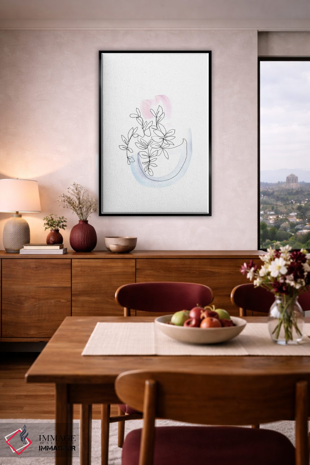 برای اتاق خواب و نشیمنهای آرام، «گیاهشناسی خطی (کانتور)» اثرِ «ژاکلین مالدونادو» در کنار چوب و پارچههای روشن، عالی مینشیند؛ برای اتاق خواب انتخابی خوشسلیقه است. با قاب روشن یا چوبی، حس طبیعیتری پیدا میکند.