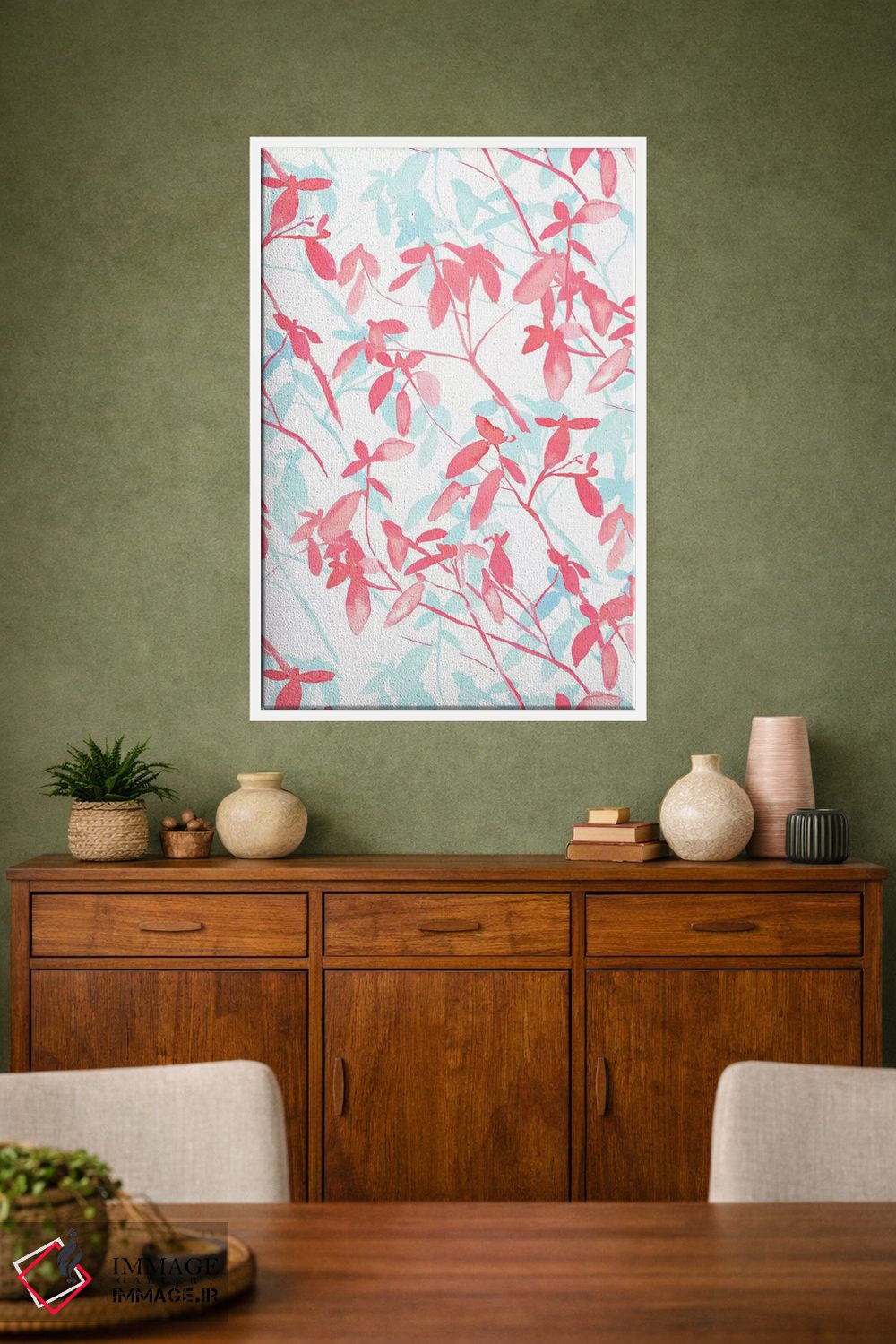 براساس پالت گرم اثر، قاب تیک گرم (چوبی) پیشنهاد اول است و مشکی مات (فریم متوسط) مکمل. برای سفارشهای پروژهای با ابعاد و قابهای اختصاصی با ایماژ در تماس باشید.