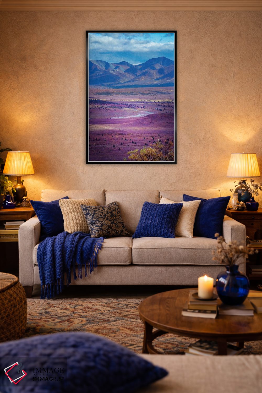 «Denali National Park Autumn Landscape Of Valley And Mountains I، آلاسکا، منظره پاییزی پارک ملی دنالی از دره و کوهها (شماره ۱)» اثرِ «جنت مویر» میتواند یک «نقطهٔ مکث» خوشسلیقه بسازد؛ برای محیطهای کاری و استودیوهای خلاق پیشنهاد میشود. به دیوار حس «تمامشده» میدهد.