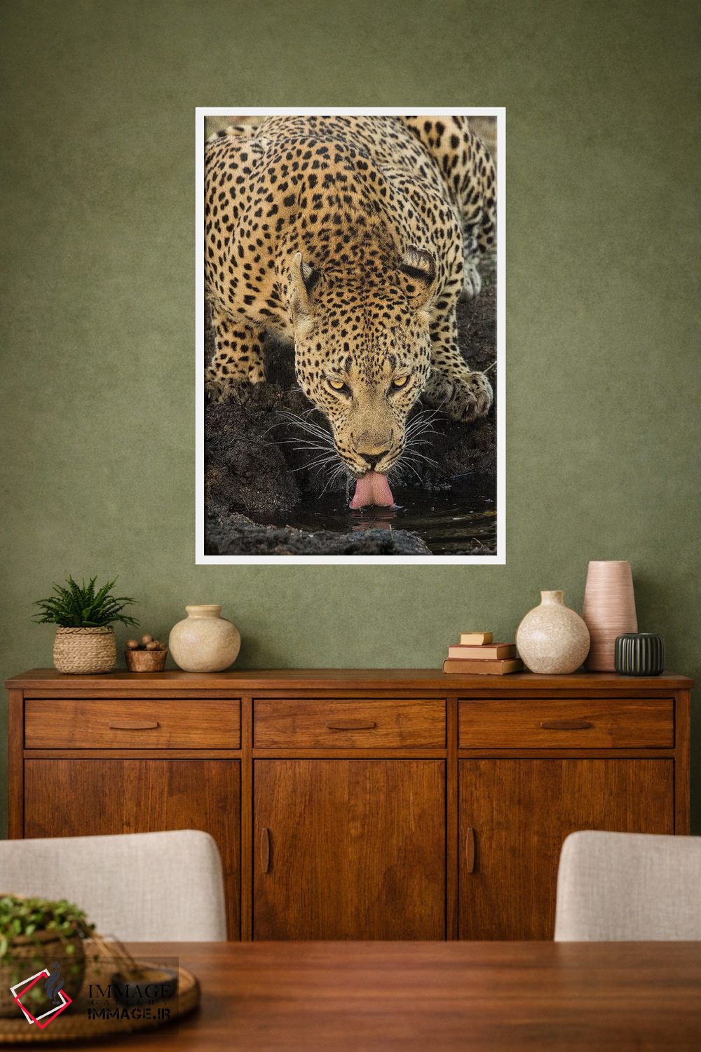در «پلنگ در حال استراحت» اثرِ «جیمیز»، حضور حیوانات به دیوار، انرژیِ نرم و زنده میدهد؛ برای اتاق کودک (بدون لحن کودکانه) انتخابی خوشسلیقه است. در کنار گیاهان و نور طبیعی، جذابتر هم میشود.