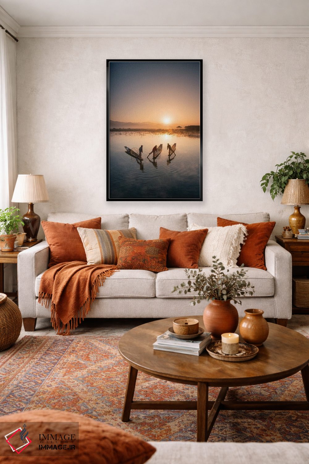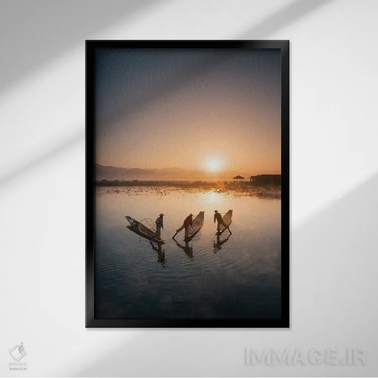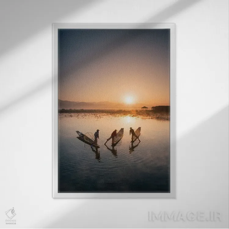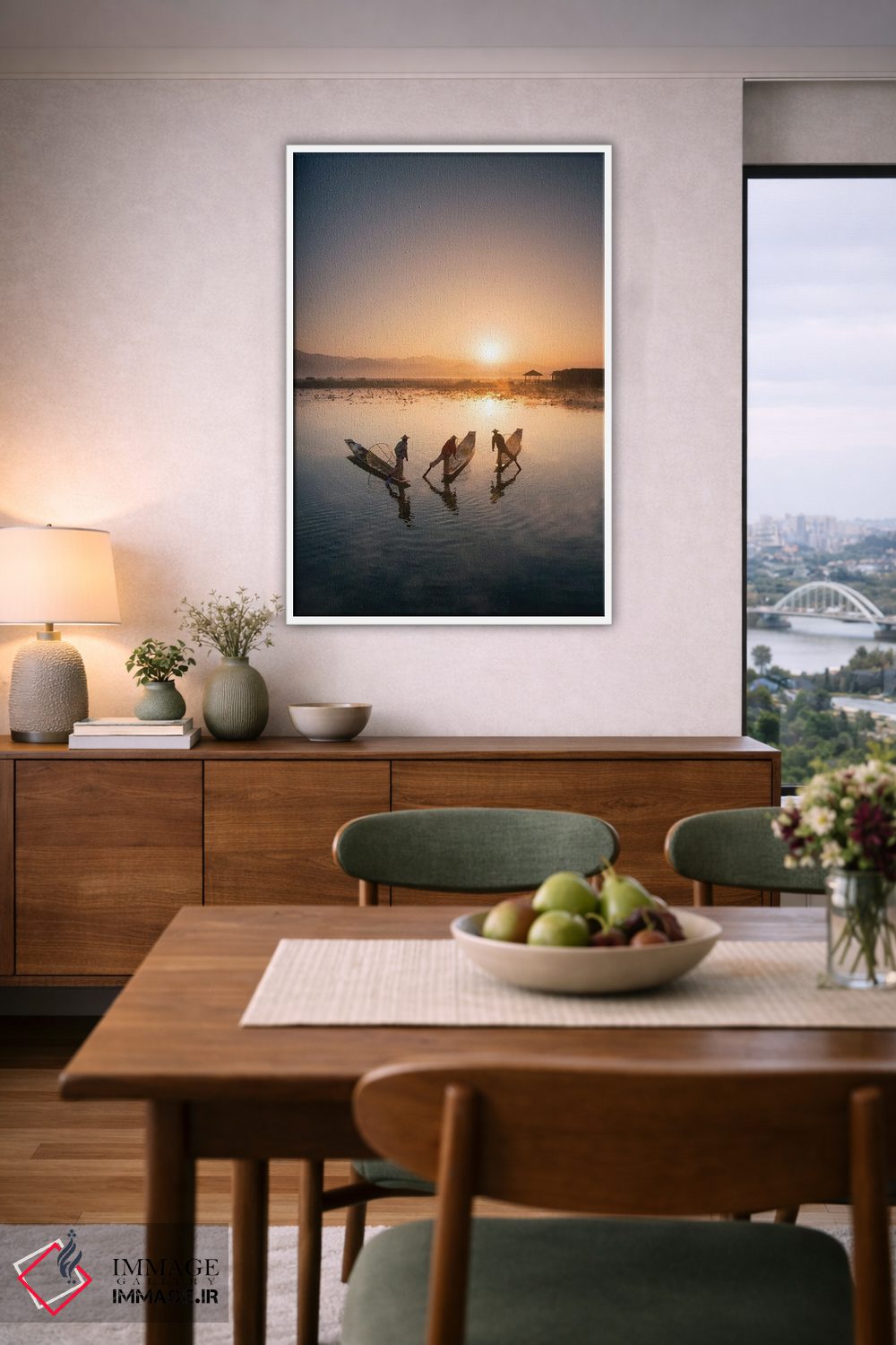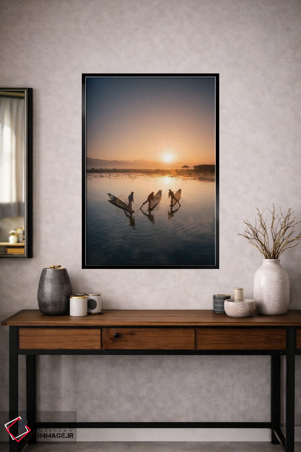 «Inle Lake، Myanmar، گروهی از ماهیگیران اینتا هنگام طلوع خورشید، دریاچه اینله، میانمار» اثرِ «یان بکه» از آن انتخابهاییست که روی دیوار، تمیز و دقیق دیده میشود؛ برای راهروها و ورودیهای مینیمال انتخابی عالی است. یک انتخاب خوشسلیقه است که با گذر زمان هم تازه میماند.