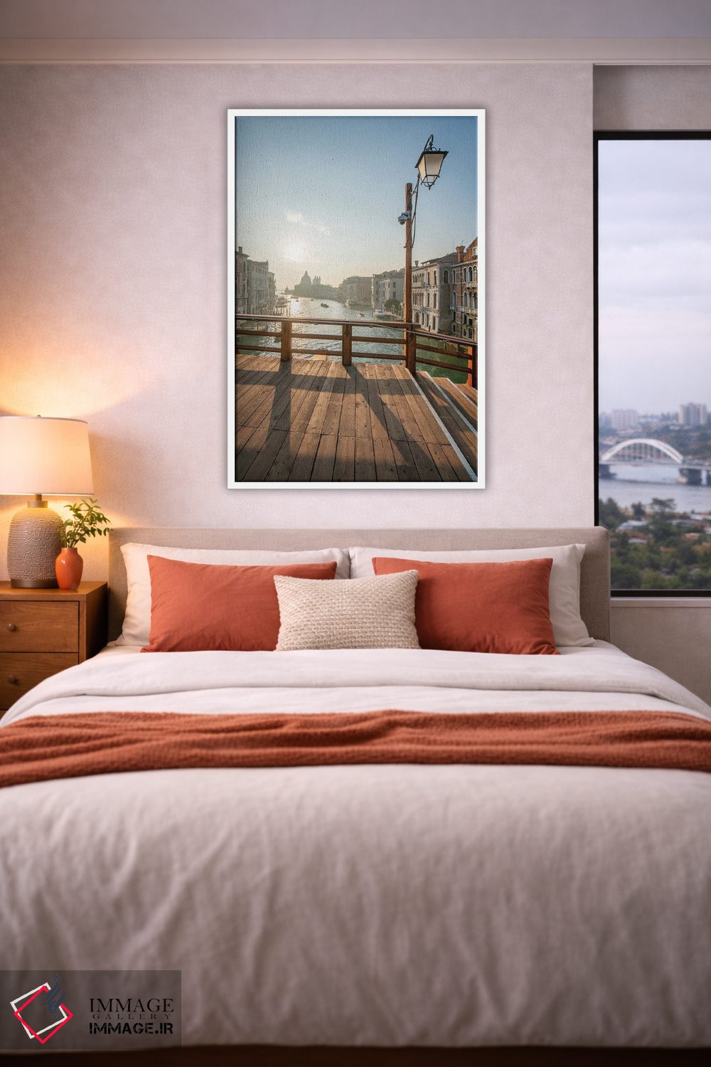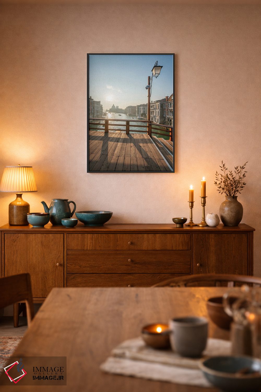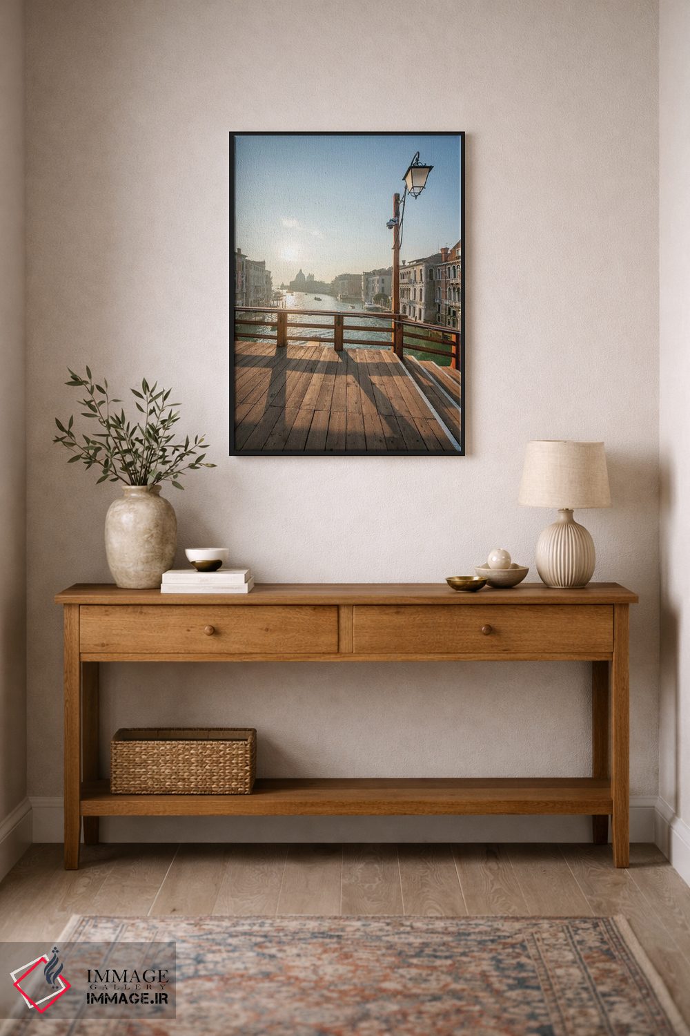 برای دیواری که میخواهید سلیقهتان را آرام و دقیق نشان بدهد، «Venice، Italy، پل آکادمیا و گراند کانال هنگام طلوع آفتاب، ونیز، ایتالیا» اثرِ «یان بکه» دیوار را از تزئین به «حضور» تبدیل میکند؛ برای نشیمنهای صمیمی و پذیراییهای شیک پیشنهاد میشود. حضورش روی دیوار «مرتب» است؛ نه پر سر و صدا، نه بیاثر.