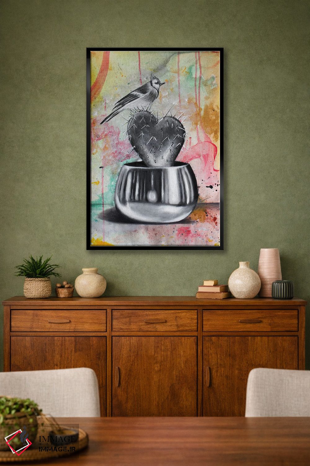 تابلو دکوراتیو کاکتوس و پرنده اثر جونیر ناوارو