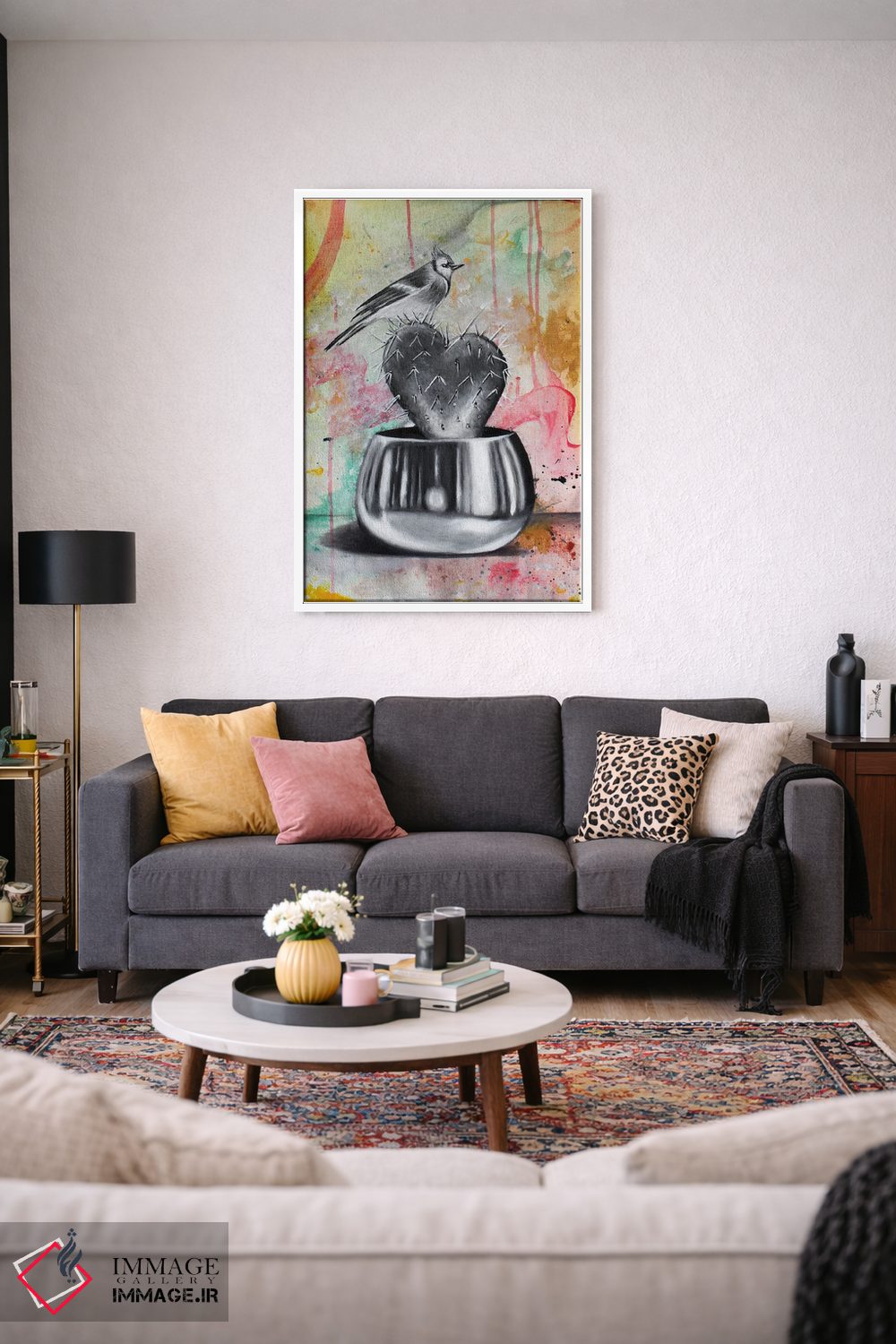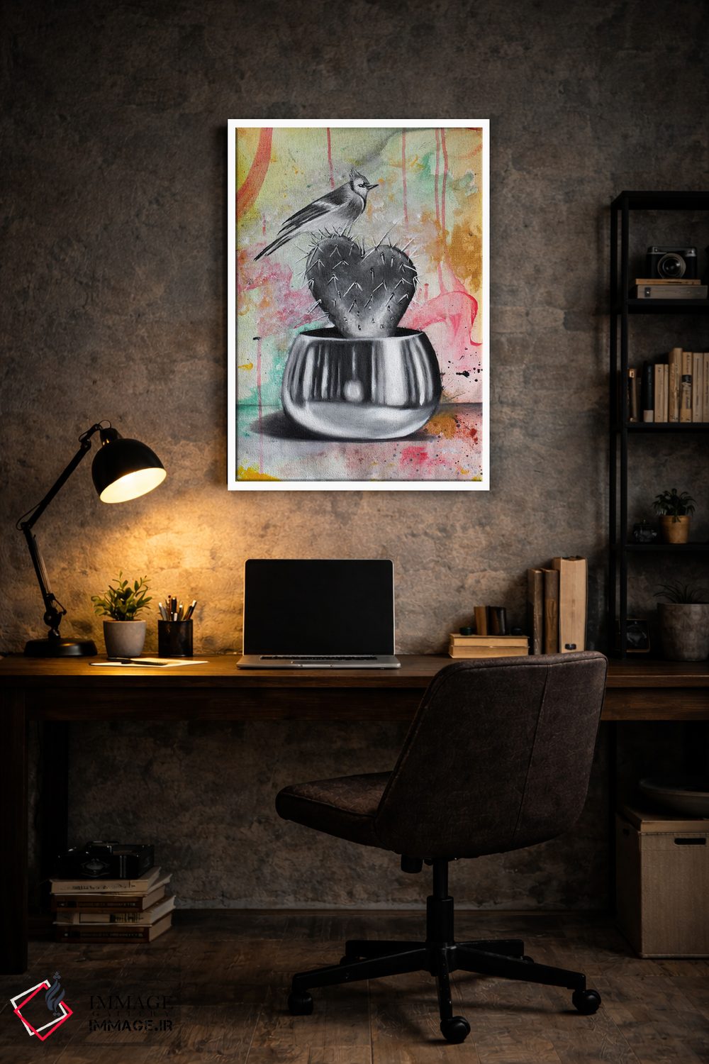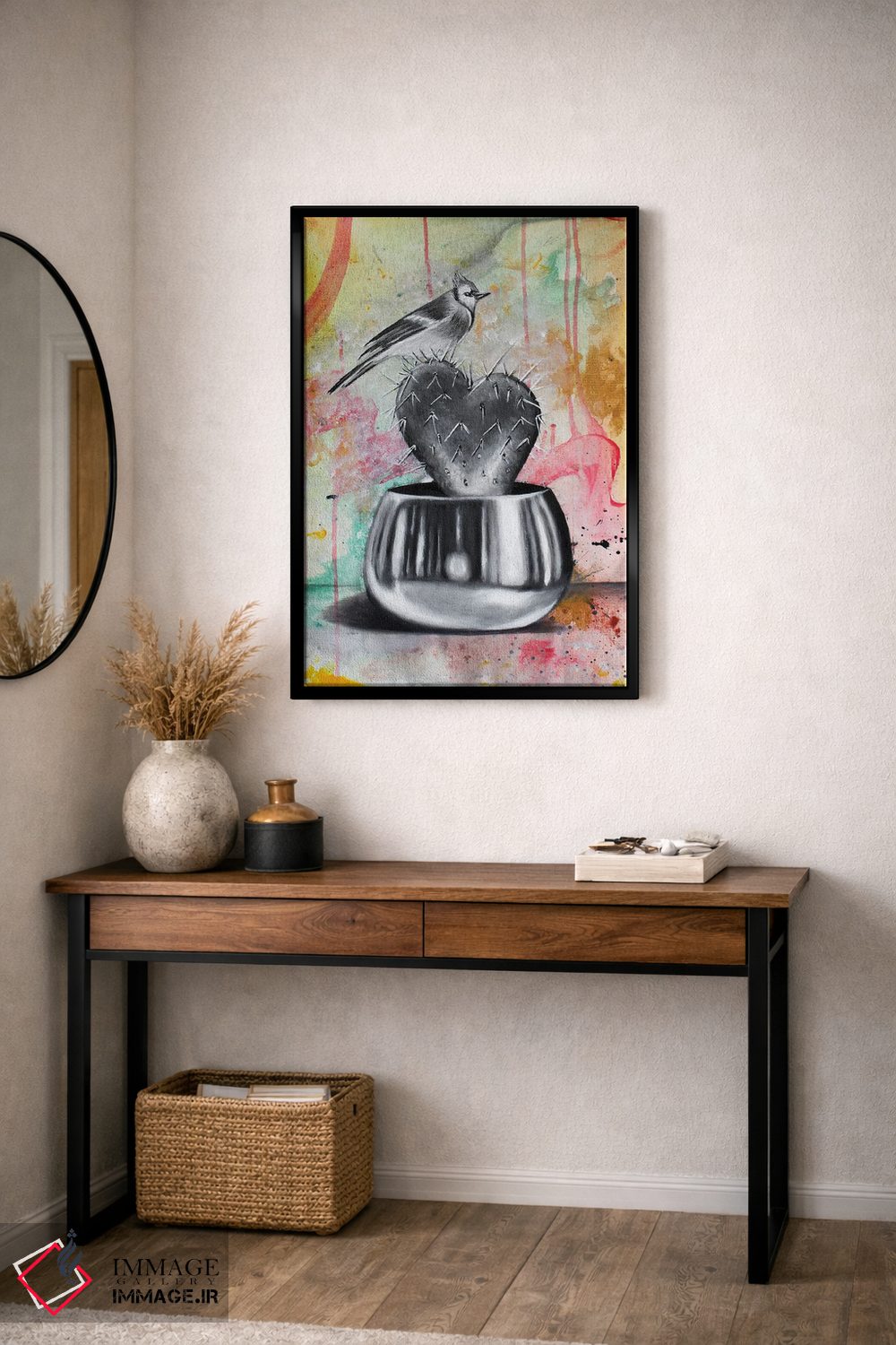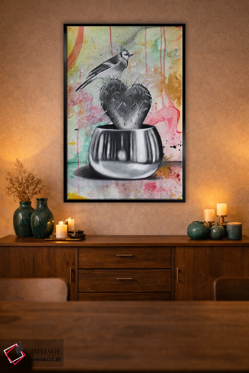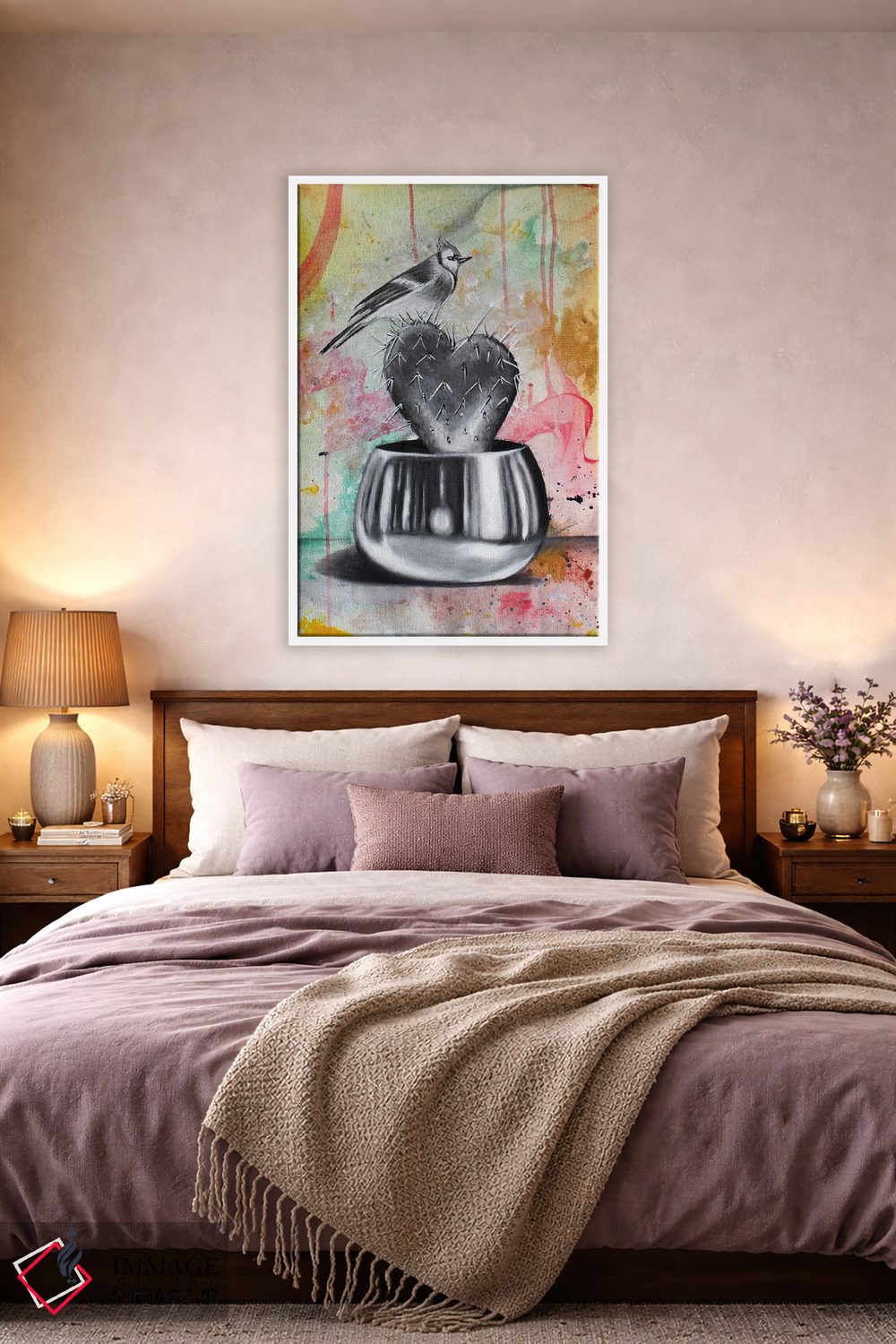 «کاکتوس و پرنده» اثرِ «جونیر ناوارو» میتواند برای دیوارهای ساده، یک لطافتِ دقیق بسازد؛ برای فضاهای بوهمی پیشنهاد میشود. جزئیاتش از نزدیک هم ارزش تماشا دارد.