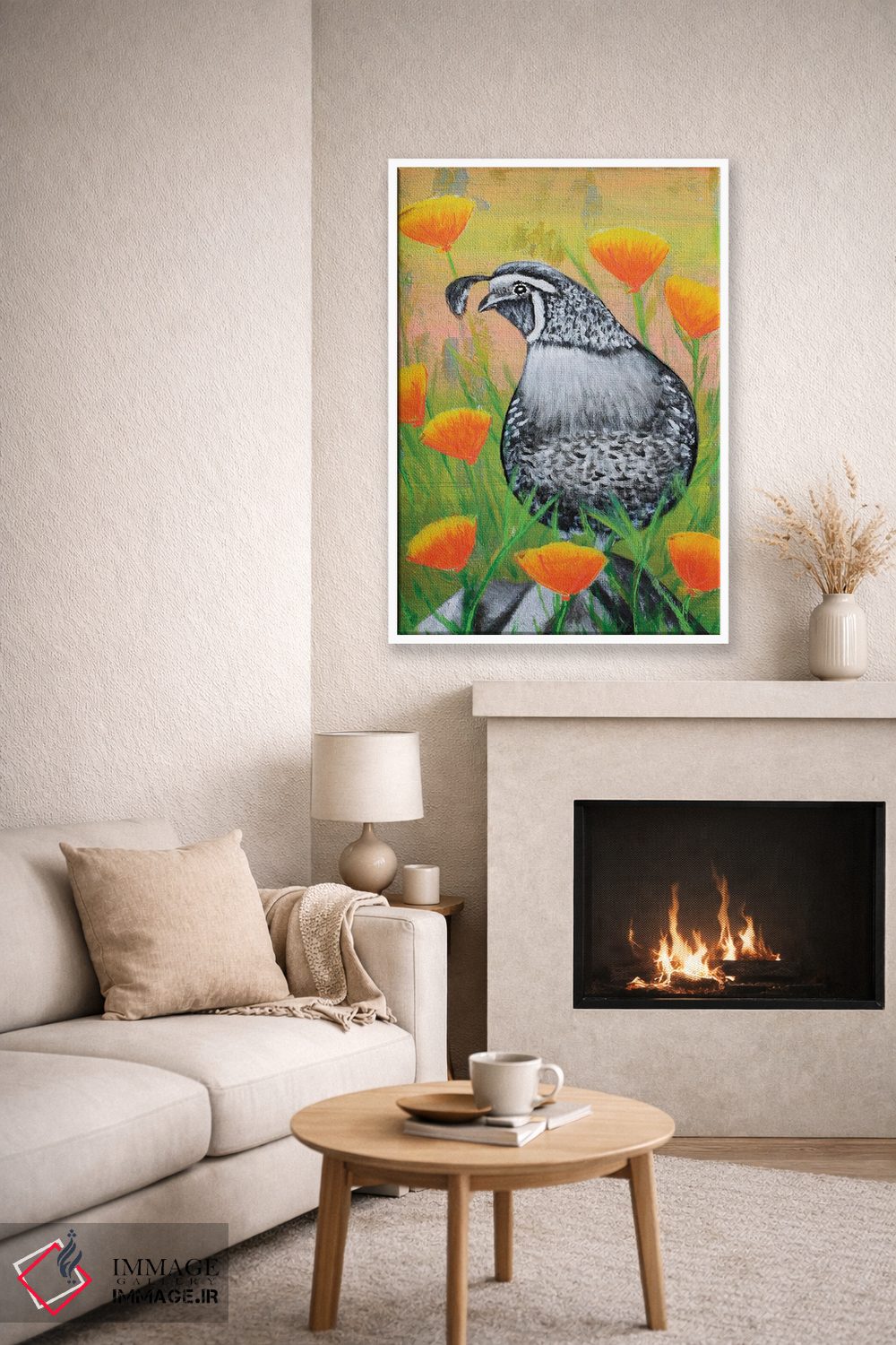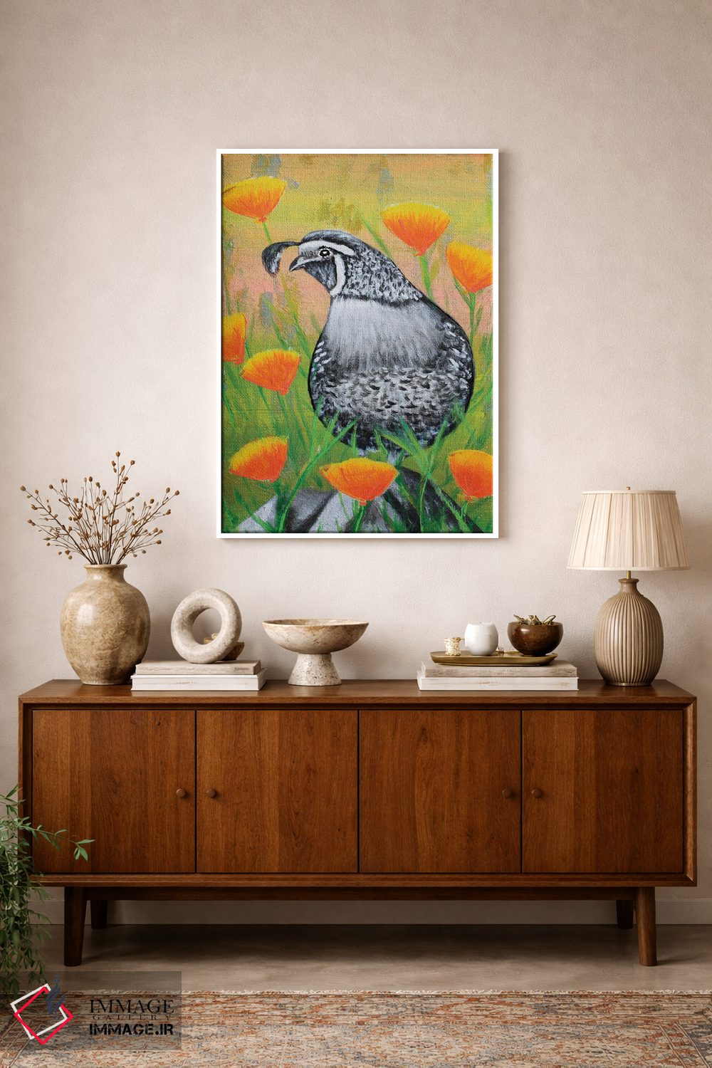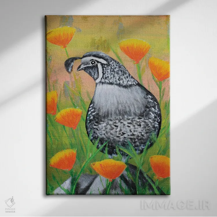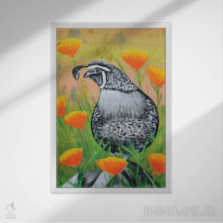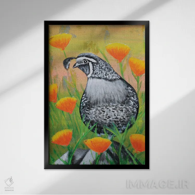تابلو دکوراتیو بلدرچین کالیفرنیا و شقایق ها اثر جونیر ناوارو