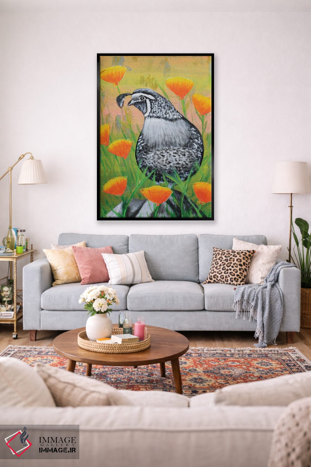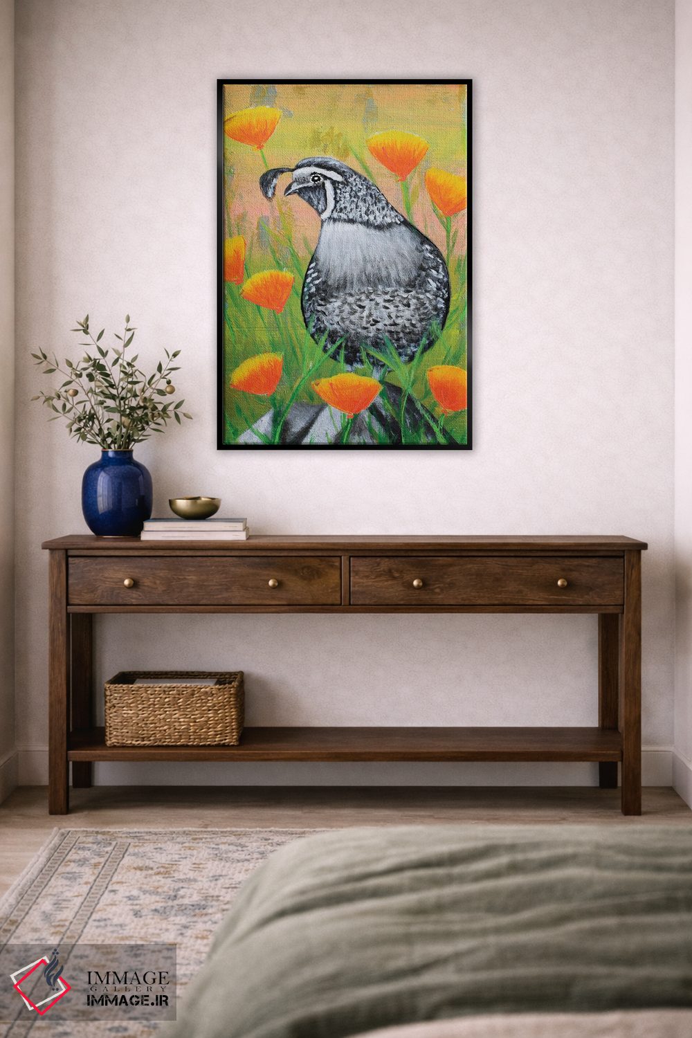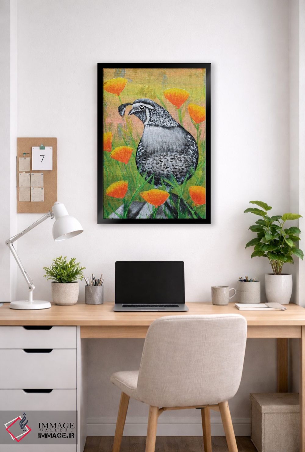 تابلو دکوراتیو بلدرچین کالیفرنیا و شقایق ها اثر جونیر ناوارو