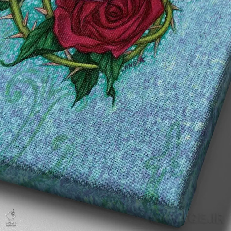 تابلو دکوراتیو Skull And Roses,تاج، جمجمه و رزها اثر جین استار ویلز - نمای نزدیک بافت بوم