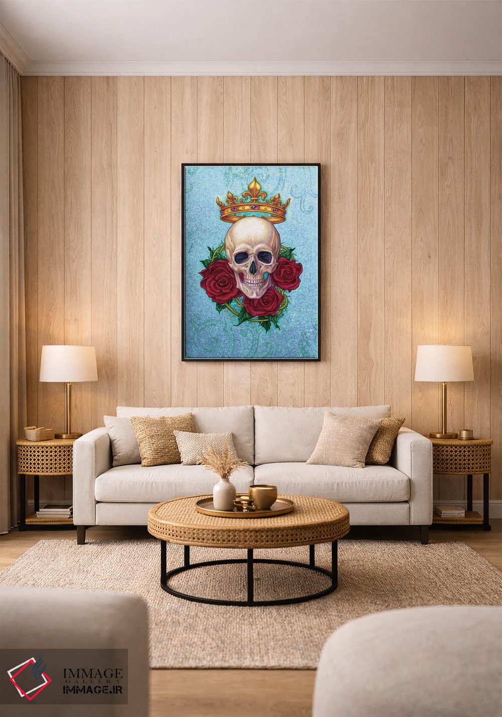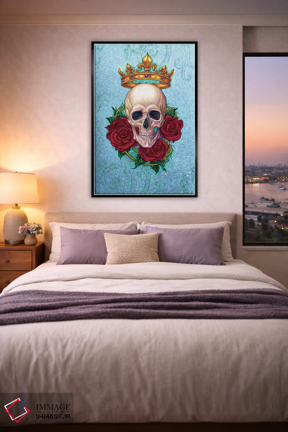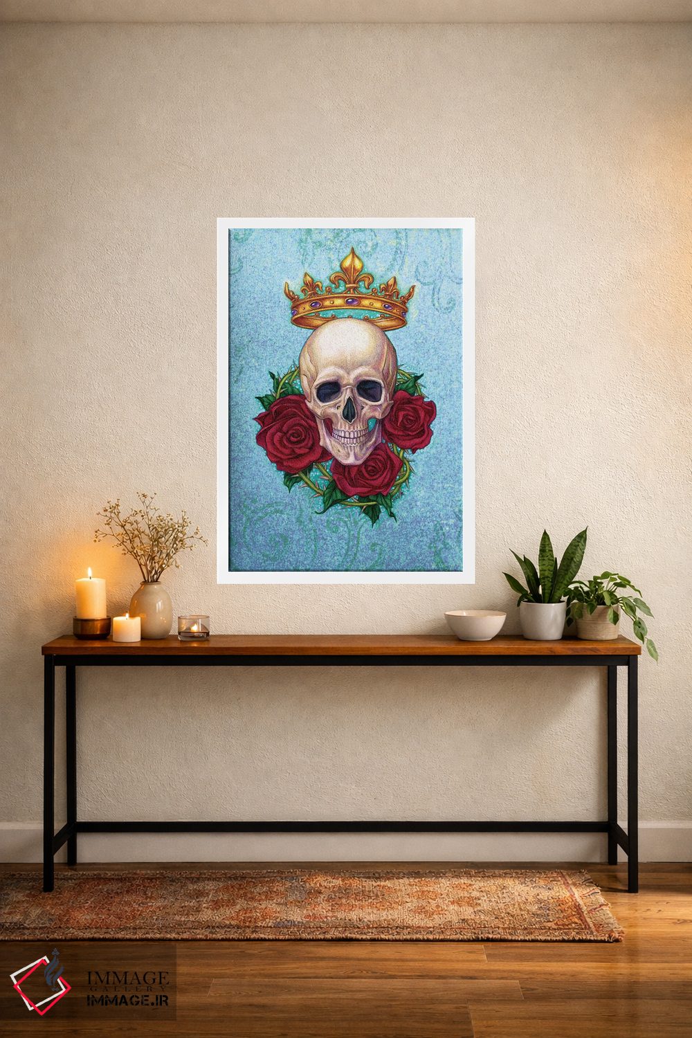 تابلو دکوراتیو Skull And Roses,تاج، جمجمه و رزها اثر جین استار ویلز - نمای پرسپکتیو محصول