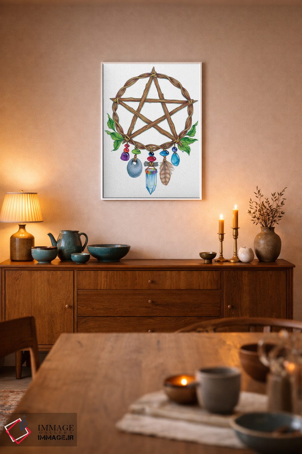 «افسون پنجپر» اثرِ «جین استار ویلز» از آن کارهاییست که در دکورهای جدیتر (نشیمن رسمی یا دفتر کار) عالی مینشیند.