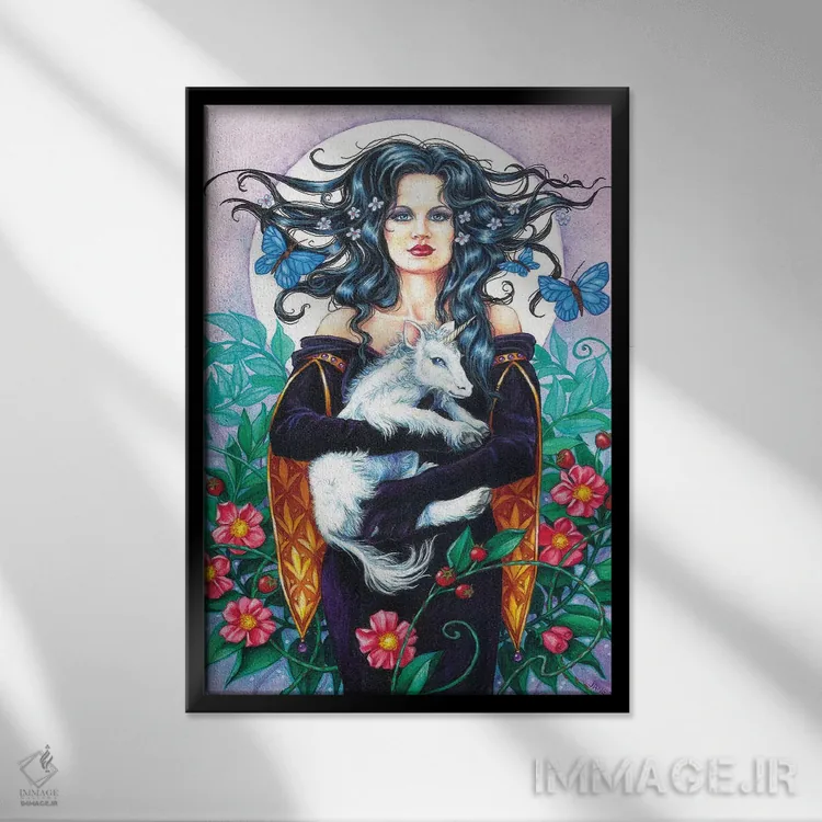 تابلو دکوراتیو تک شاخ کوچک اثر جین استار ویلز - نمای قاب‌دار مشکی