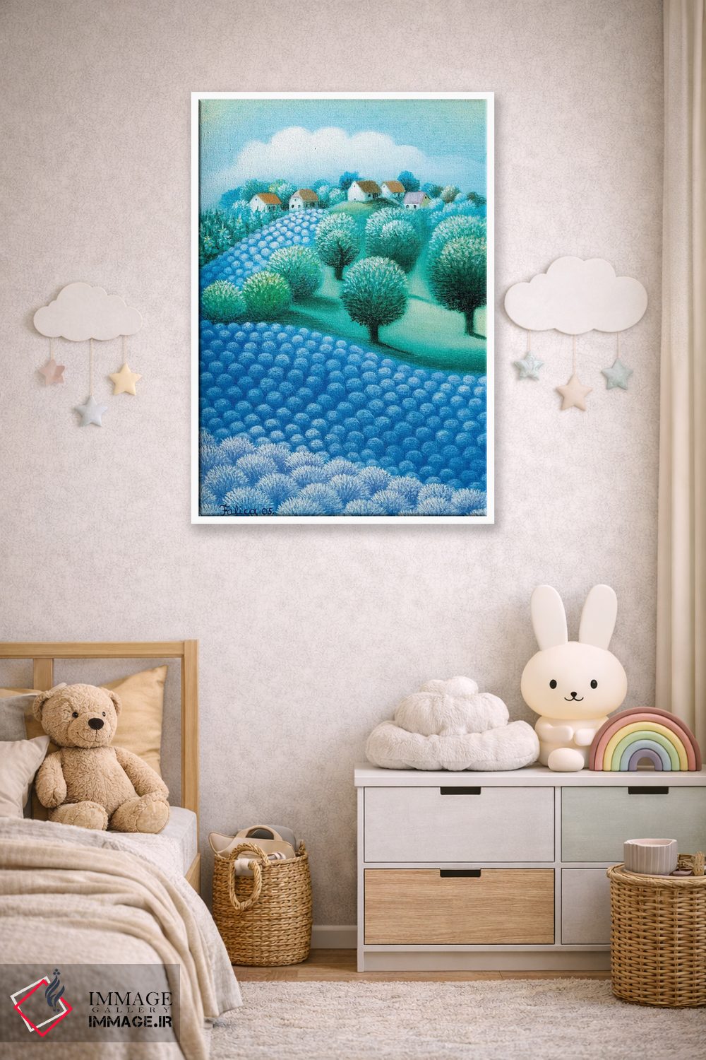 بوم گالری ایماژ نسخهی دکوراتیوِ سطحبالا از یک اثر هنری است. روی کنواس بدون اسید با بافت ظریف و یکنواخت با چاپ هنری به استاندارد جیکلی (Giclée) با رنگهای آرشیوی UltraChrome HDR برای طبیعیتر دیده شدن رنگها روی دیوار؛ در گذارهای رنگی، لطافت بیشتری حس میشود. اسمبل تمیز و آمادهی نصب؛ کشیدگی استاندارد روی کلاف و یراق مناسب.