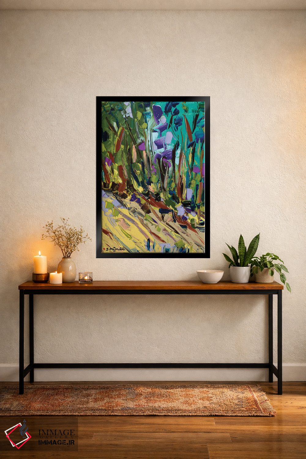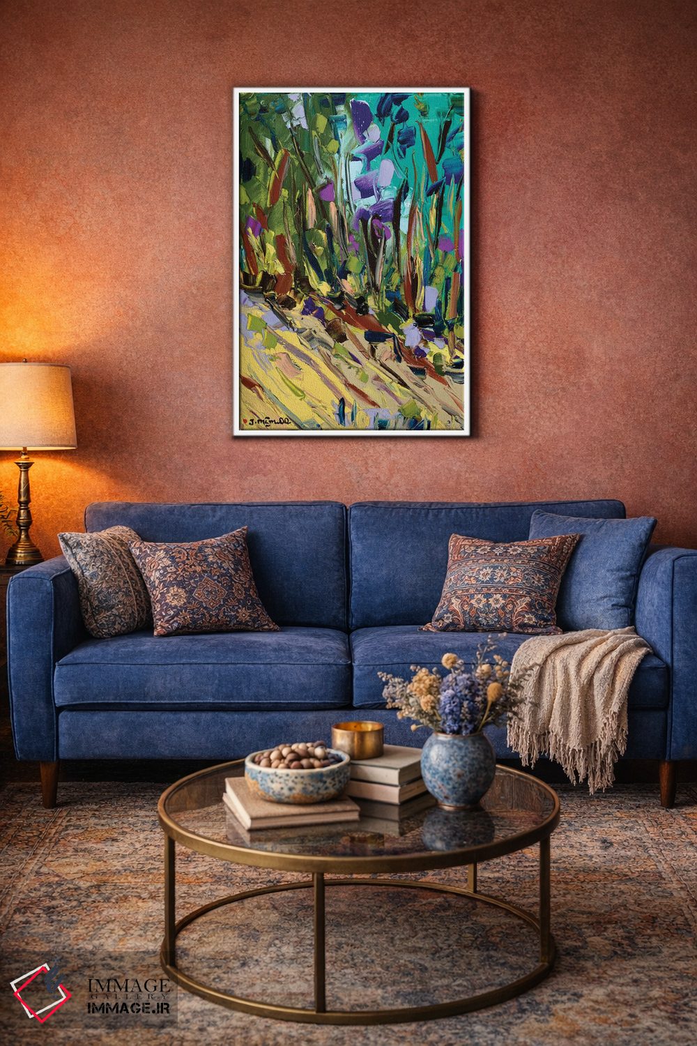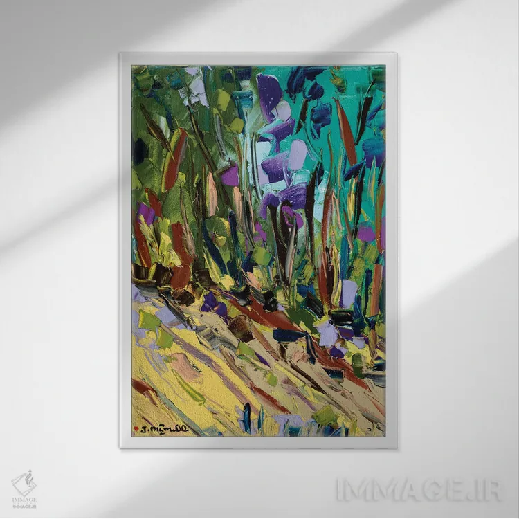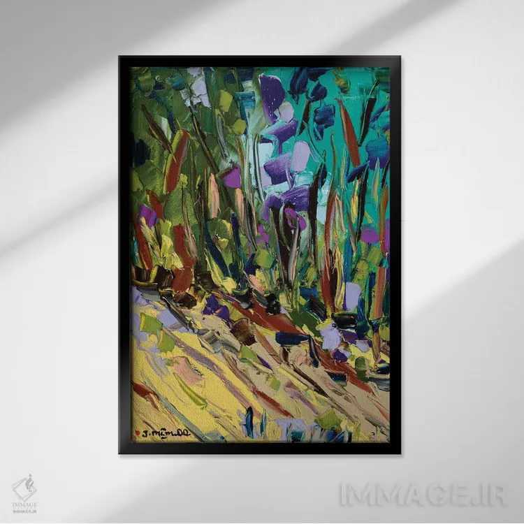 براساس پالت ترکیبی اثر، قاب تیک گرم (چوبی) پیشنهاد اول است و مشکی مات (فریم متوسط) مکمل. برای سفارشهای پروژهای با ابعاد و قابهای اختصاصی با ایماژ در تماس باشید.