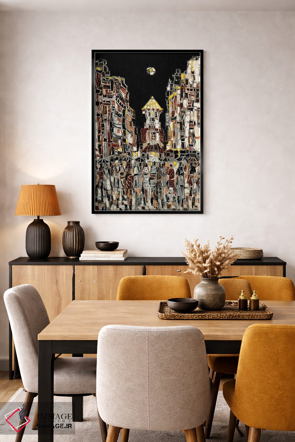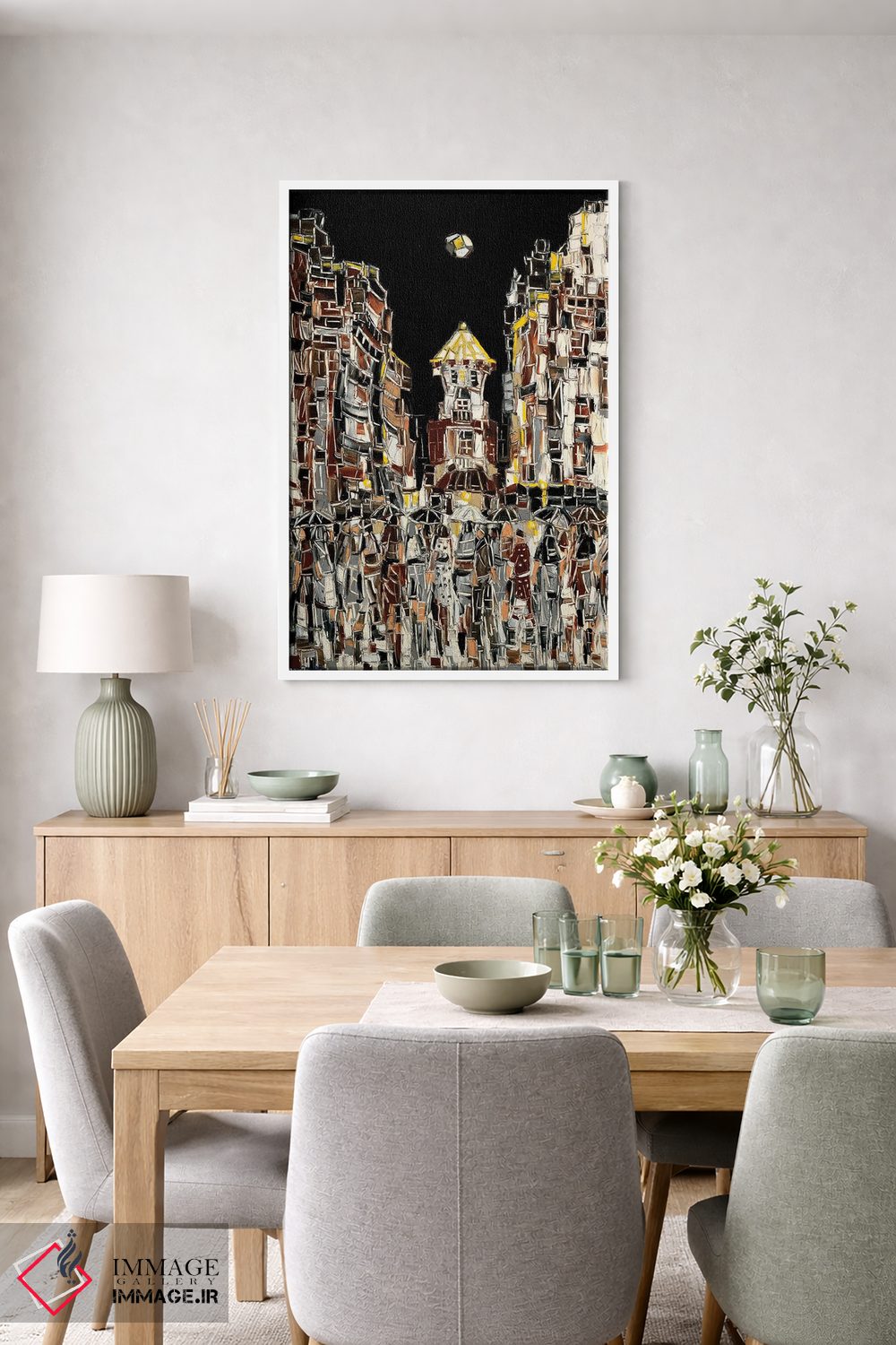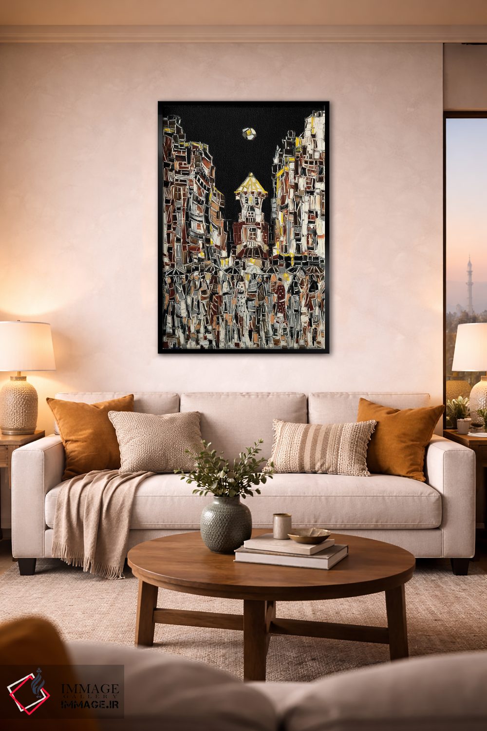 بوم گالری ایماژ طوری طراحی شده که اثر روی دیوار «پرداختشده» و حرفهای دیده شود—نه پرزرقوبرقِ بیپایه؛ بلکه دقیق و خوشپرداخت. بافت ظریف کنواس کمک میکند حس اثر هنری را در نگاه نزدیک نگه میدارد بهخصوص وقتی نور موضعی ملایم داشته باشید. کنترل تونها کمک میکند تعادل بهتری بین نور و رنگ ایجاد میکند و برای محیطهای رسمیتر هم انتخاب مطمئنی است. حاصل کار، یک تابلو خوشنشین است که هم از دور اثرگذار است و هم از نزدیک خوشخوان؛ در کنار نورپردازی درست، جلوهی گالریوار بیشتری حس میشود.