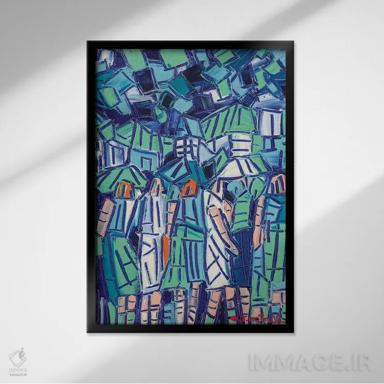 براساس پالت ترکیبی اثر، قاب تیک گرم (چوبی) پیشنهاد اول است و مشکی مات (فریم متوسط) مکمل. برای سفارشهای پروژهای با ابعاد و قابهای اختصاصی با ایماژ در تماس باشید.