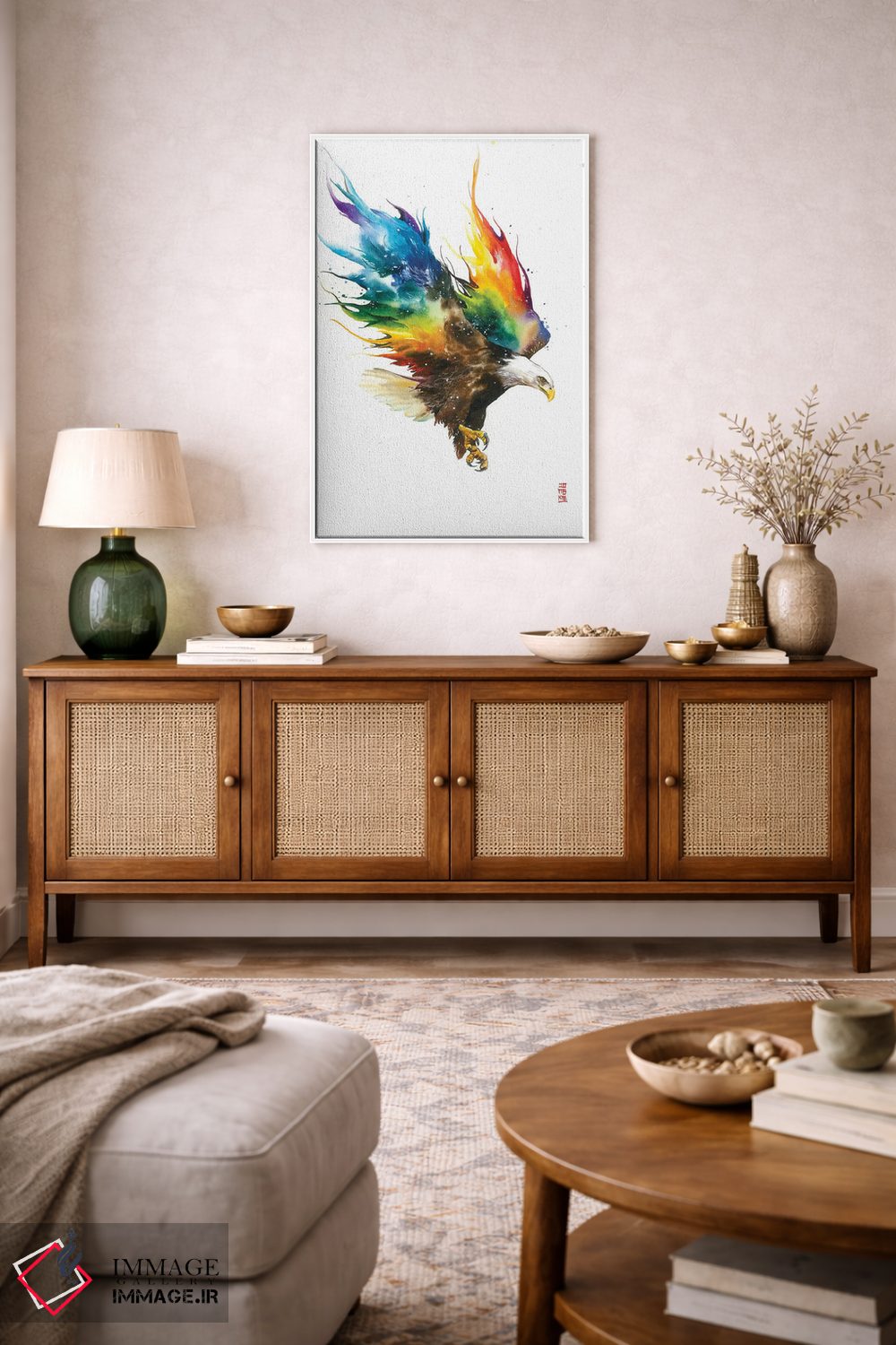 طراحی بوم گالری ایماژ بهگونهای است که اثر روی دیوار «پرداختشده» و حرفهای دیده شود—نه پرزرقوبرقِ بیپایه؛ بلکه دقیق و خوشپرداخت. با بافت ظریف کنواس، حس اثر هنری را در نگاه نزدیک نگه میدارد بهخصوص وقتی نور موضعی ملایم داشته باشید. با بافت ظریف کنواس، به تصویر شخصیت میدهد بدون اینکه شلوغ کند و نتیجه را یکدستتر میکند. برای سفارش اندازه یا قاب متفاوت، تیم ایماژ راهنمایی میکند تا انتخاب نهایی هماهنگتر باشد.